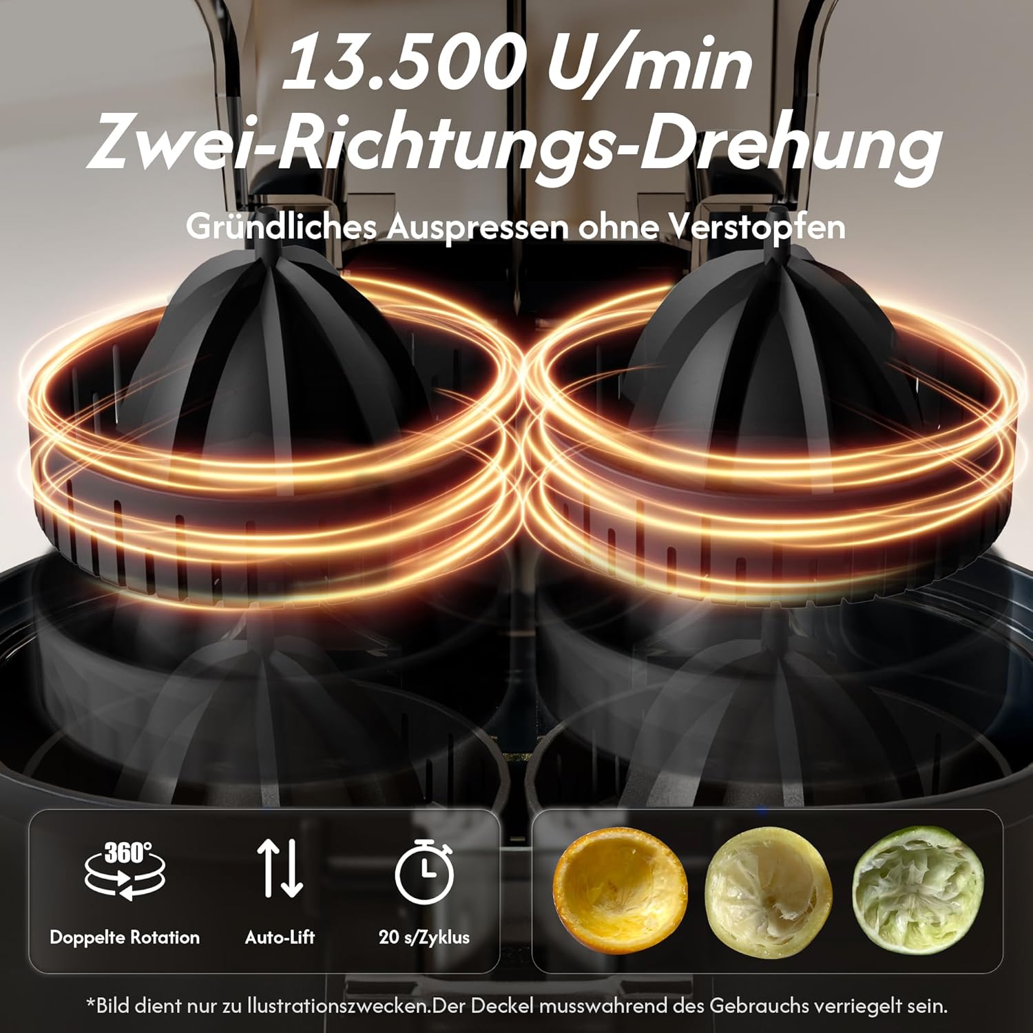 Бързото въртене и промяната на въртящия момент осигуряват максимален добив на сок – без запушване на пулпата, без отпадъци.