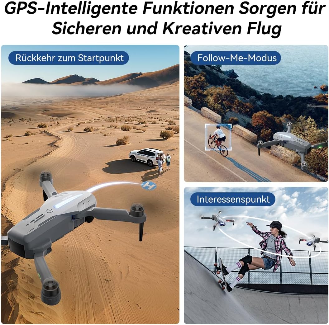 • Многофункционален дизайн: GPS дронът B16 има автоматично проследяване, планиране на маршрута на полета, полет до интересни точки, както и селфита с жестове и 3D завъртане. Дронът поддържа и режим „headless“, три настройки на скоростта и старт/кацане с едно щракване, много удобен за начинаещи.