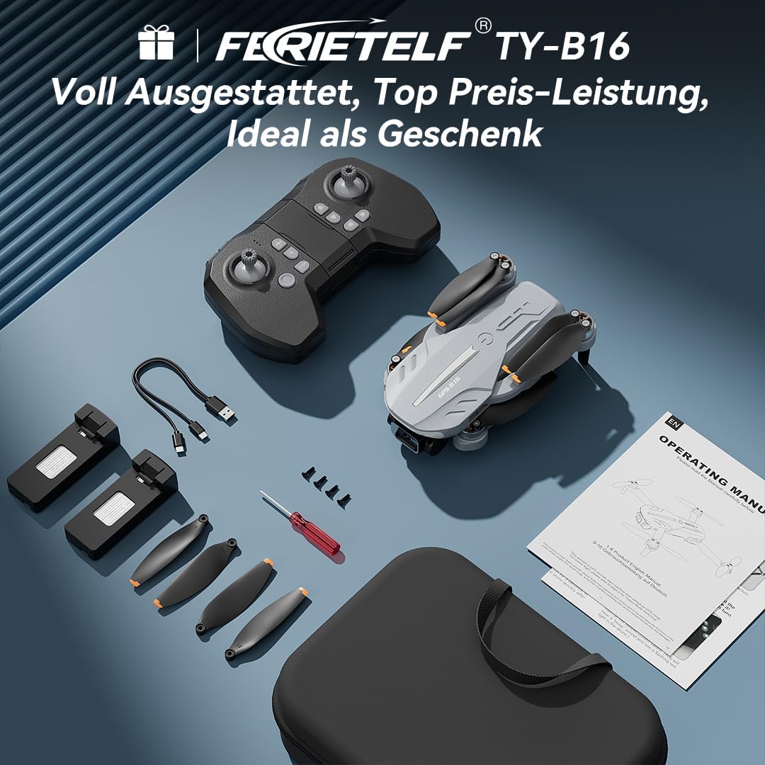 • Дрон с 4k камера: Дронът B16 прави детайлни, ясни снимки и видеоклипове. Заедно с 5GHz WiFi предаване, широкоъгълен обектив от 120° и електрическо регулиране на ъгъла от 90°, дронът помага за заснемане на по-широки въздушни кадри от птичи поглед. Независимо дали е за туризъм, градски влогове или приключения на открито, дронът е добър избор.