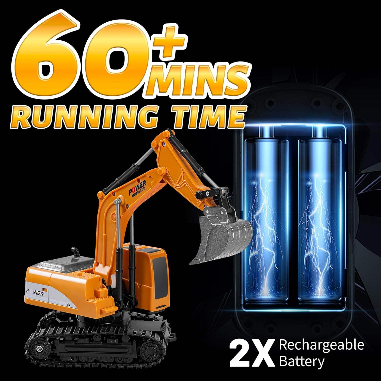 • 2 батерии за по-дълго време за игра - За по-добро игрово изживяване сме подготвили 2 акумулаторни батерии. Играчката багер изисква само акумулаторна батерия, за да работи. Можете да използвате батерията алтернативно, което ви позволява да удвоите времето за игра (Забележка: батерията може да е изтощена при пристигане, моля, заредете я първо).