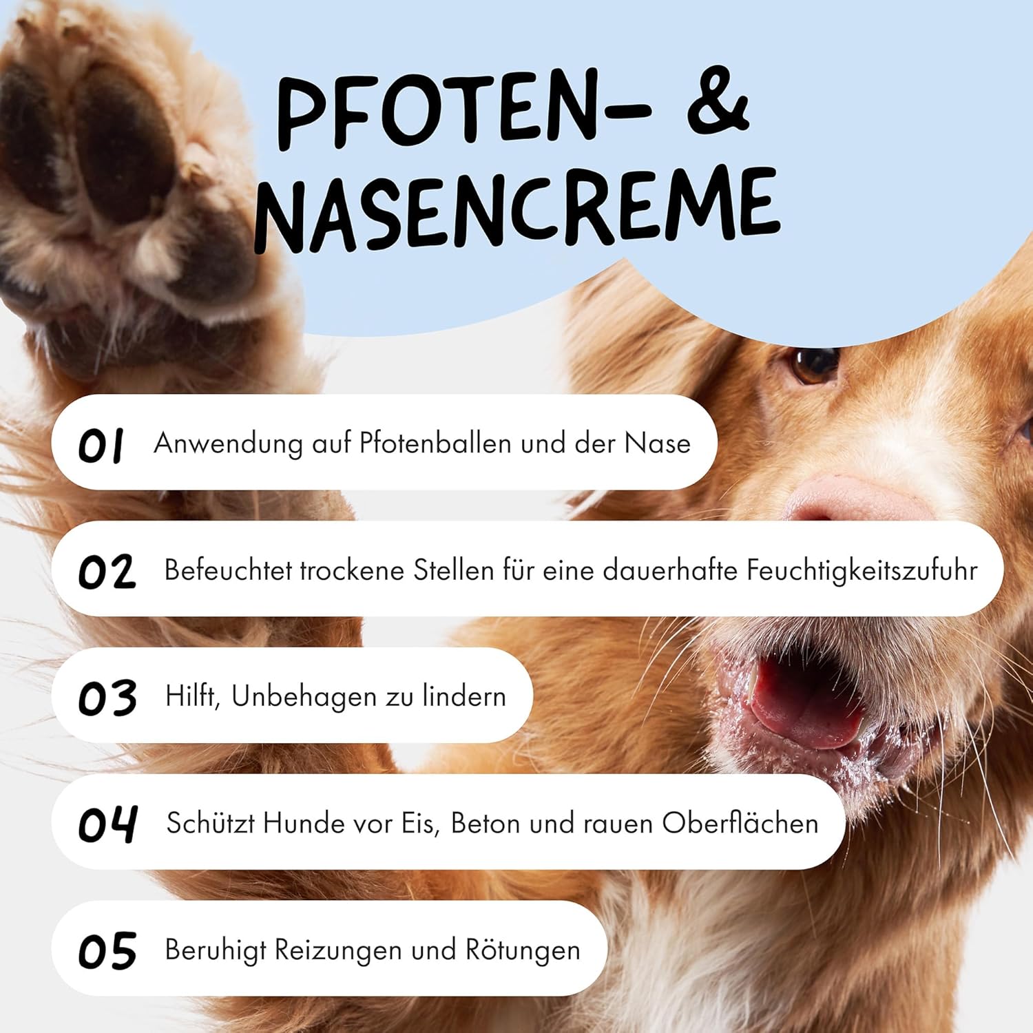 • Премиум качество от Германия – произведено в Германия с най-добрите натурални съставки: за грижа за лапите на кучета, която отговаря на най-високите стандарти и предлага на вашия четириног приятел най-доброто – дори през студения сезон.