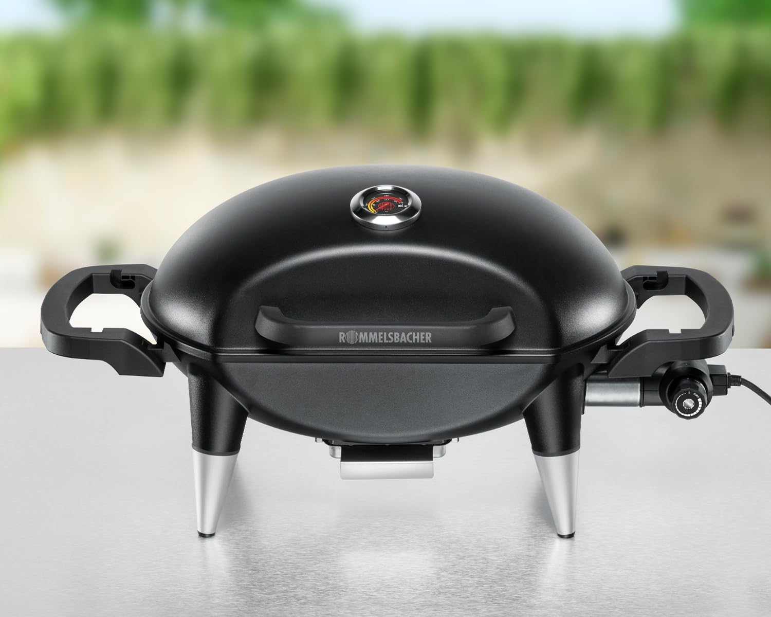 Барбекю грил ROMMELSBACHER BBQ 4000, 2-частична чугунена решетка за готвене, капак на панти с температурен дисплей, температури до 300 °C, безстепенно регулируем, разширяем с количка за грил, 2200 W