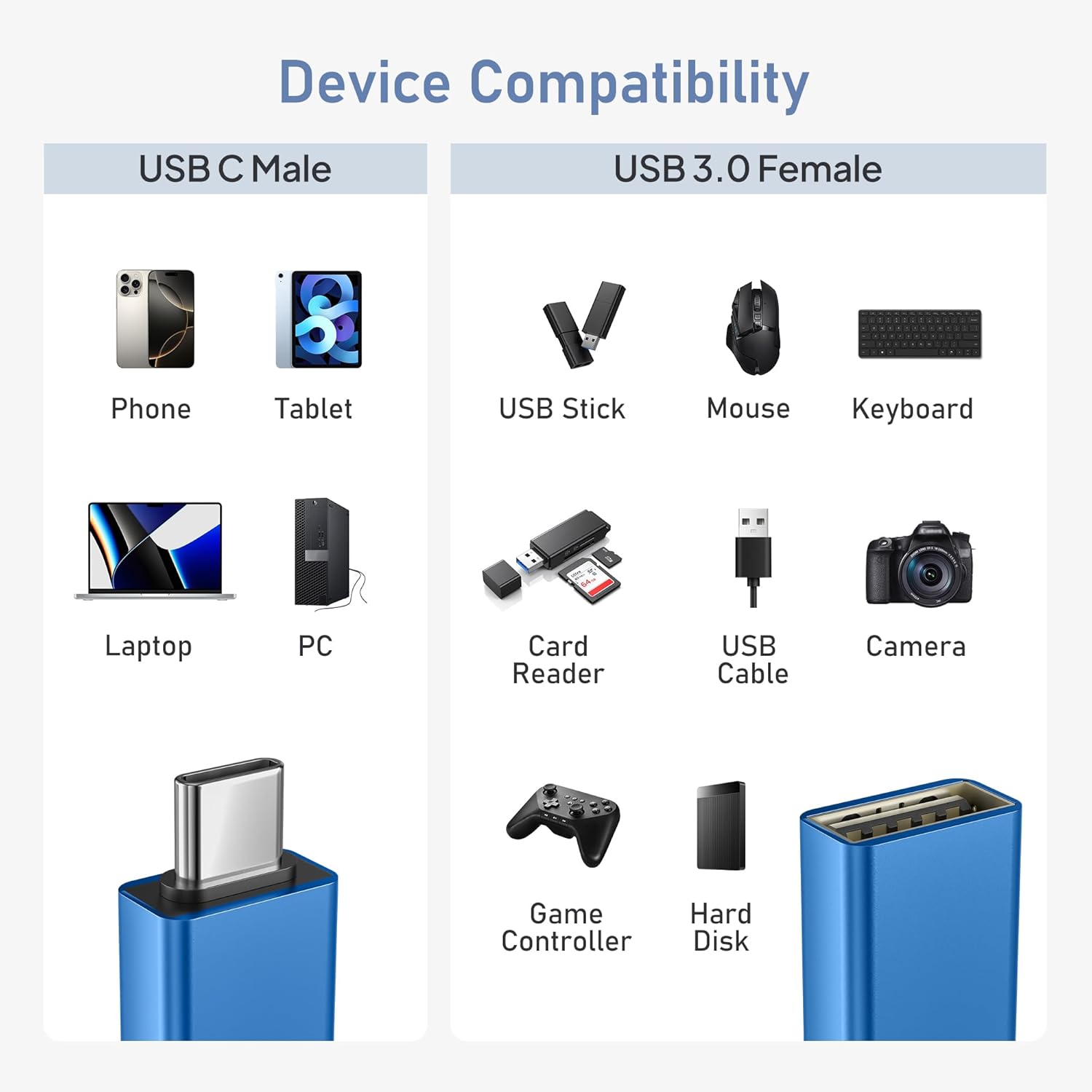 • (Лесен за употреба) Превърнете USB-C портовете на всички ваши устройства в USB-A портове с този OTG адаптер, осигурявайки им необходимия интерфейс за взаимодействие с традиционните ви устройства, които имат USB-A порт. Просто включете USB-C конектора в съответния порт на вашето устройство и сте готови.