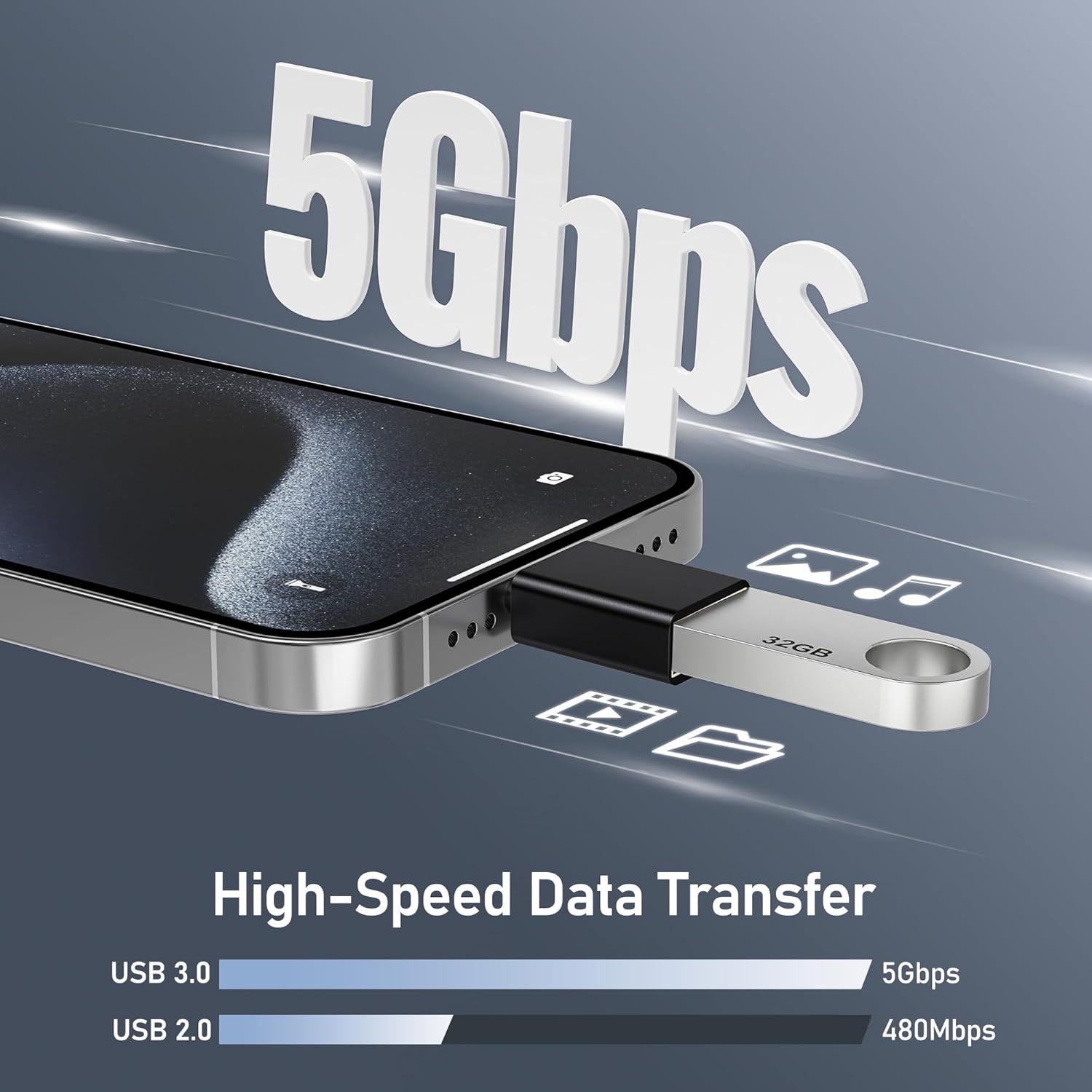 Basesailor USB C към USB адаптер, пакет от 3 броя, Thunderbolt 4 5 USB C мъжки към USB женски OTG адаптер, адаптер тип A за Apple MacBook Pro Air, iPhone 17 16 15 Max, iPad Mini, Samsung Galaxy