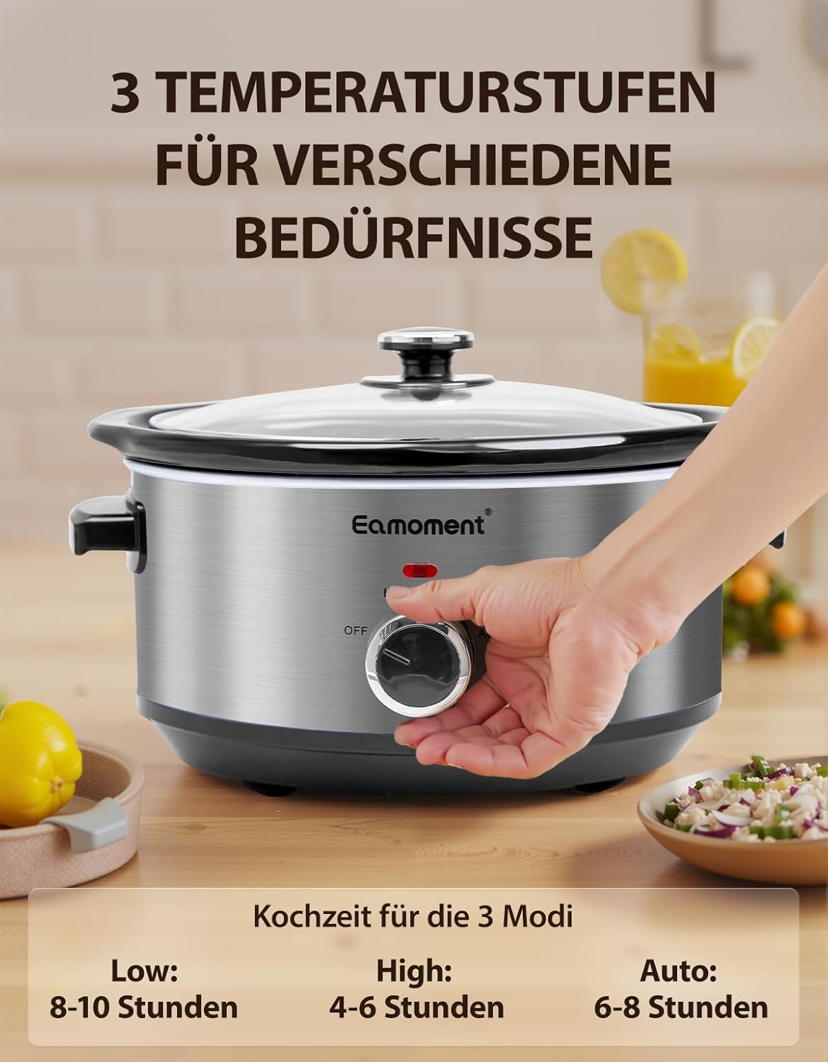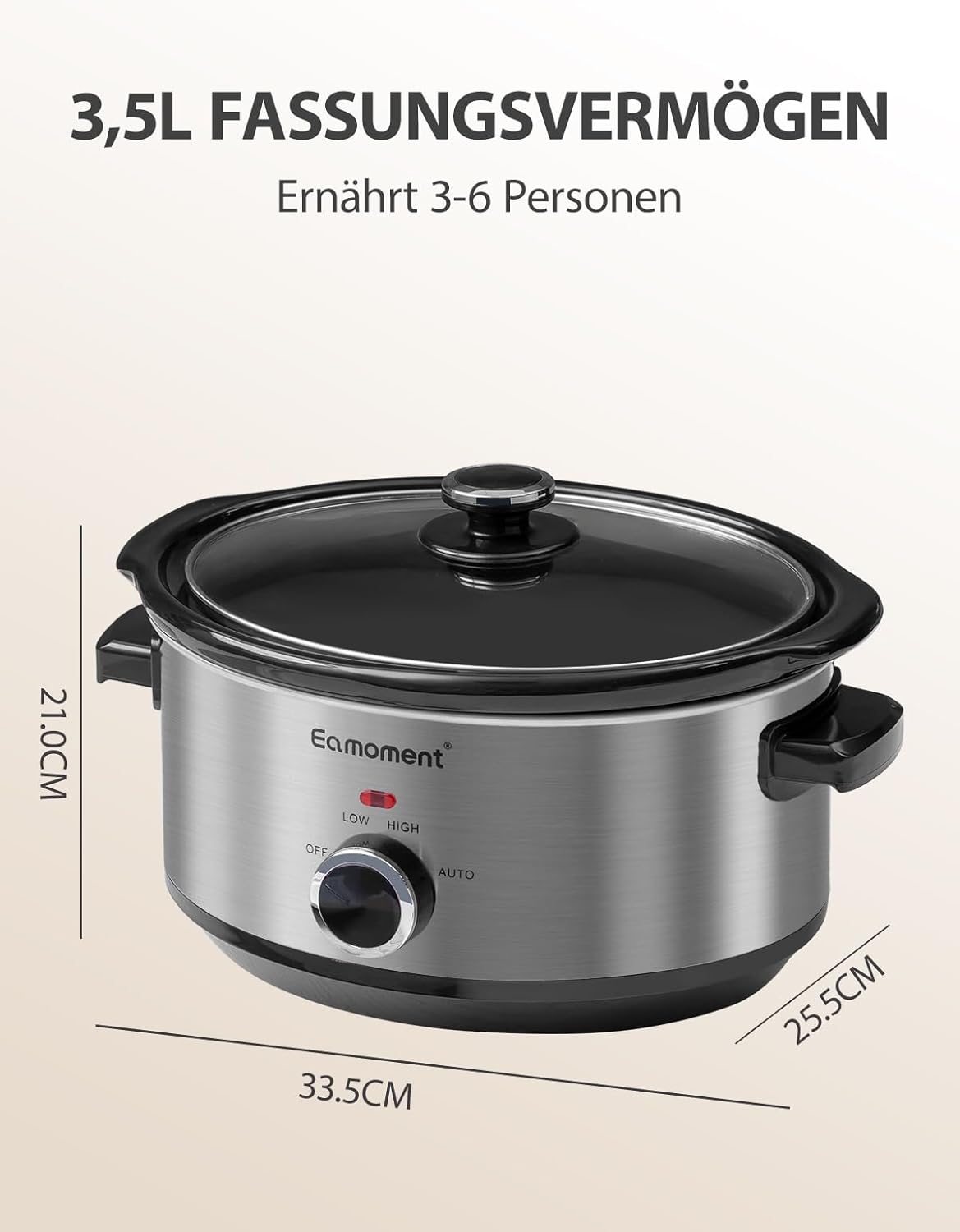 • Капацитет 3,5 литра: Бавната готварска печка Eamoment е идеална за домашната кухня и може да приготви разнообразие от здравословни и вкусни яхнии, сосове, къри, супи, печени ястия и дори десерти.