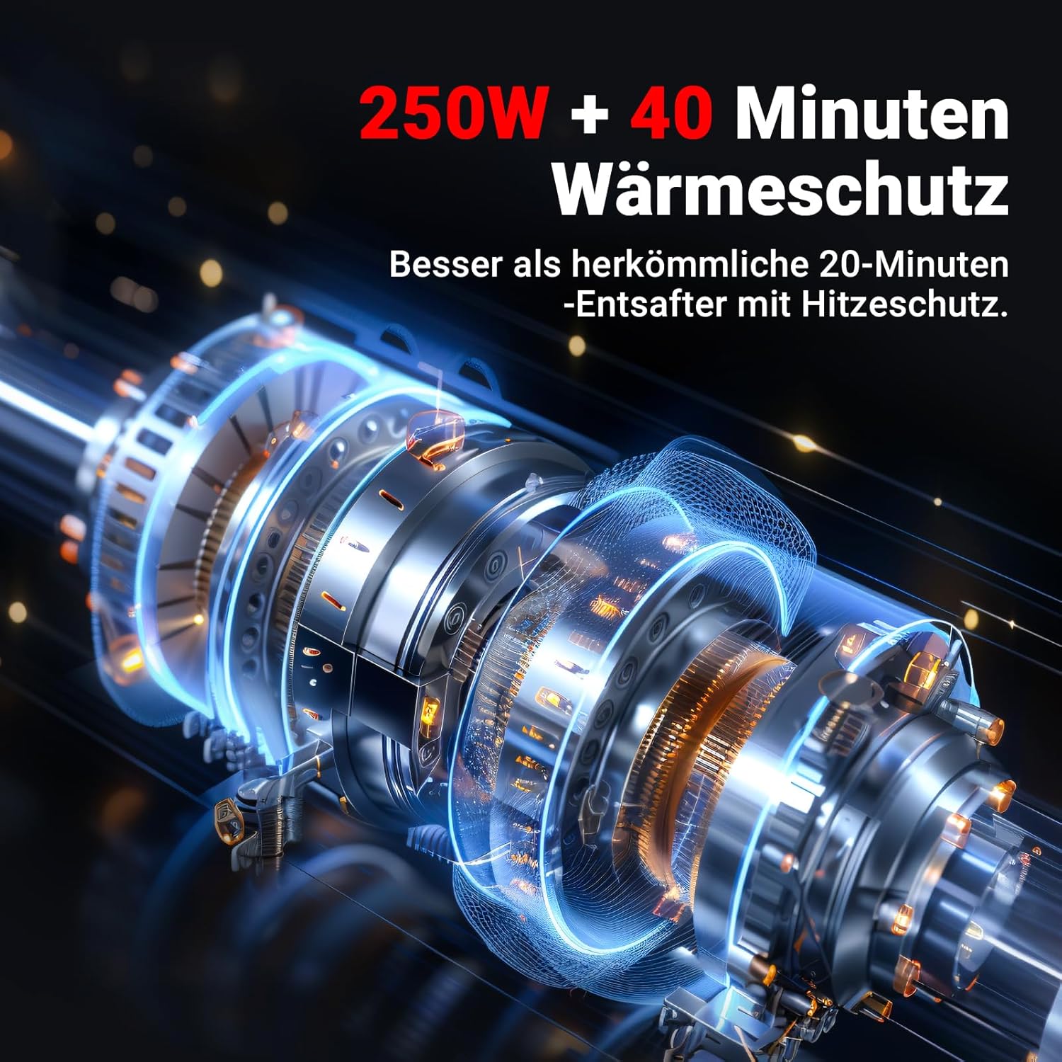 • Защита от прегряване: Вграден интелигентен чип, автоматично изключване и проверка на всеки 40 минути, по-добра от традиционната 20-минутна термична защита за сокоизстисквачки за зеленчуци и плодове. Може да удължи живота на сокоизстисквачката.