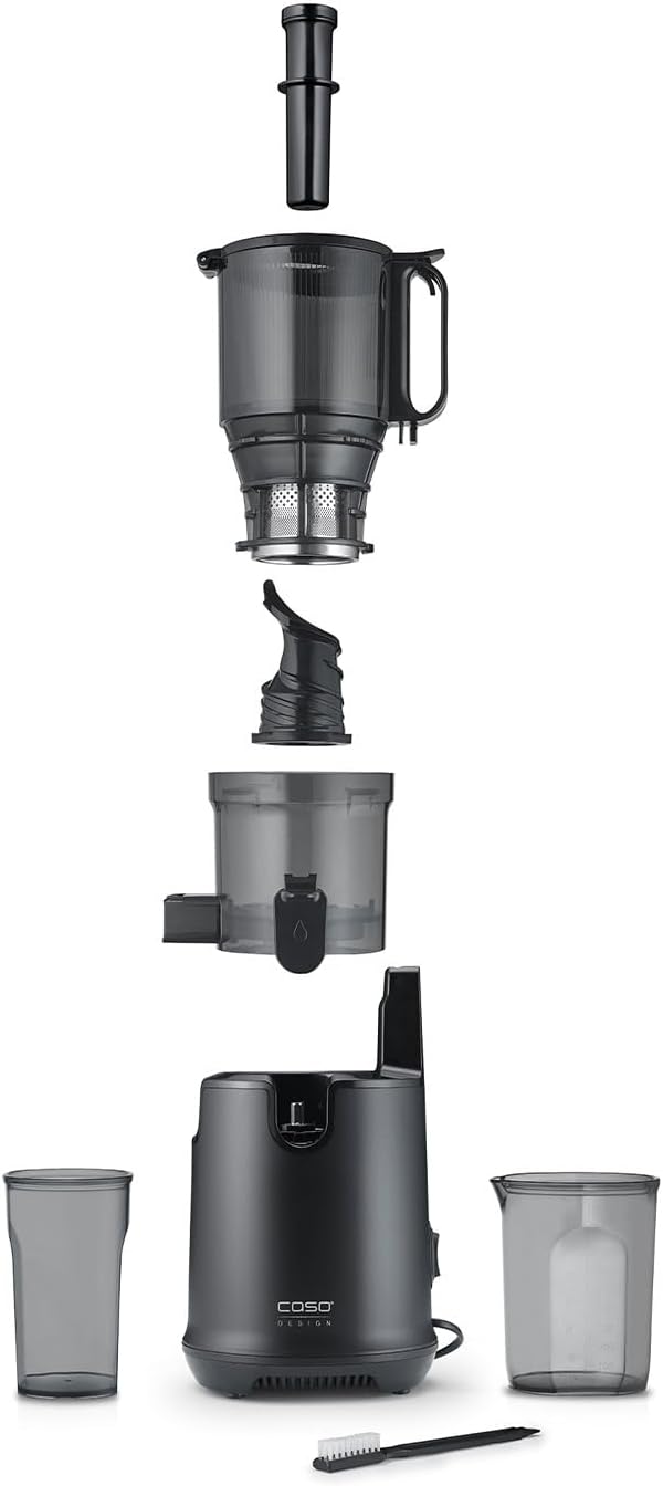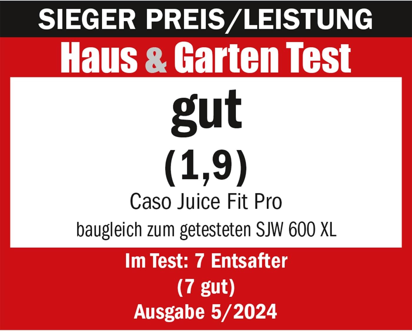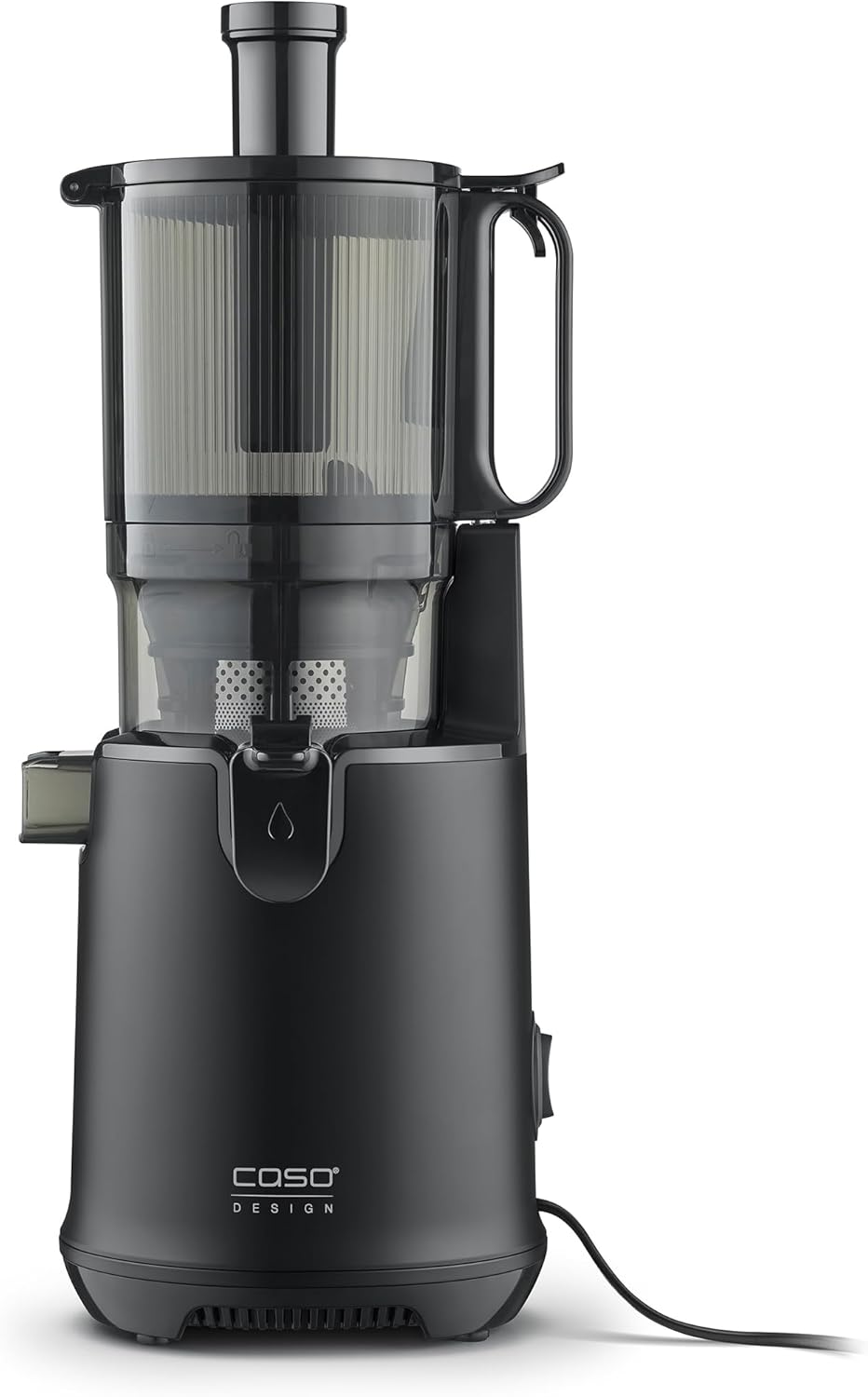 Бавна сокоизстисквачка CASO Juice Fit Pro, победител в теста: Тест за дом и градина, ниска скорост (40 об/мин), голям отвор за пълнене с диаметър 130 мм за цели плодове, черен