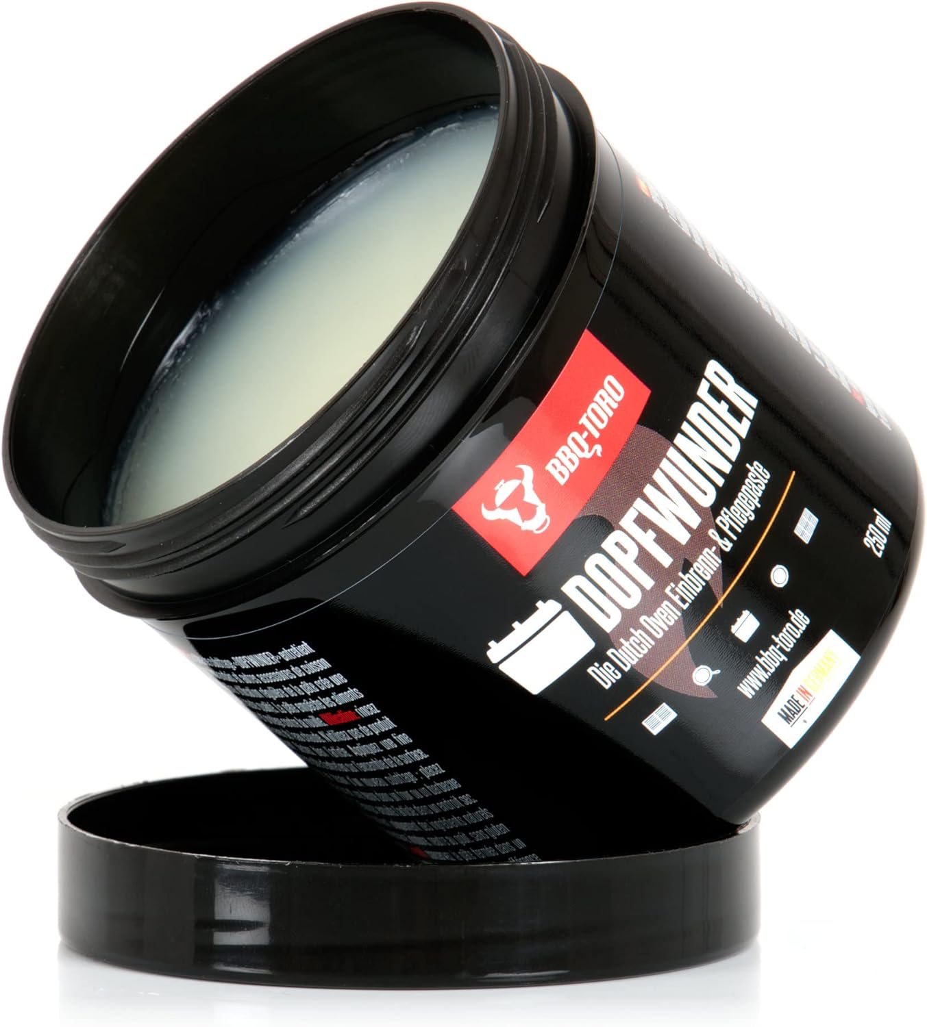 Пастата за печене dopfwunder е произведена в Германия и е подходяща за тенджери тип „холанд фурна“ и други аксесоари за чугунени скари. Редовната употреба на пастата образува висококачествена патина. Пастата предпазва от залепване на храна и ръжда. Пастата съдържа само натурални съставки и е безопасна за храни, без мирис, вкус, без глутен и веган.