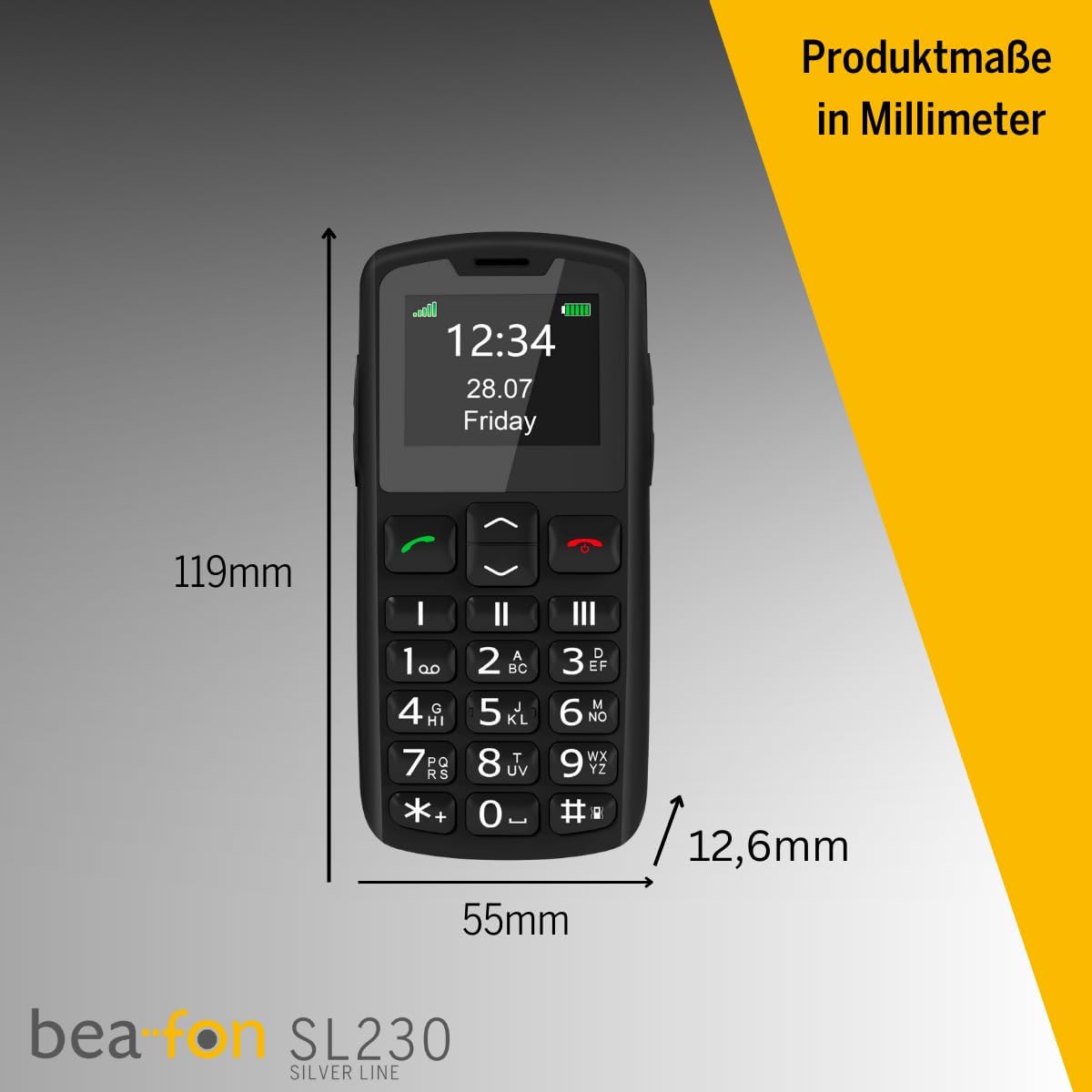 Beafon, SL230, Silver Line, Мобилен телефон за възрастни хора с бутон за спешни случаи, Бутонен мобилен телефон, 1,8-инчов (4,52 см) цветен дисплей, Големи цифри