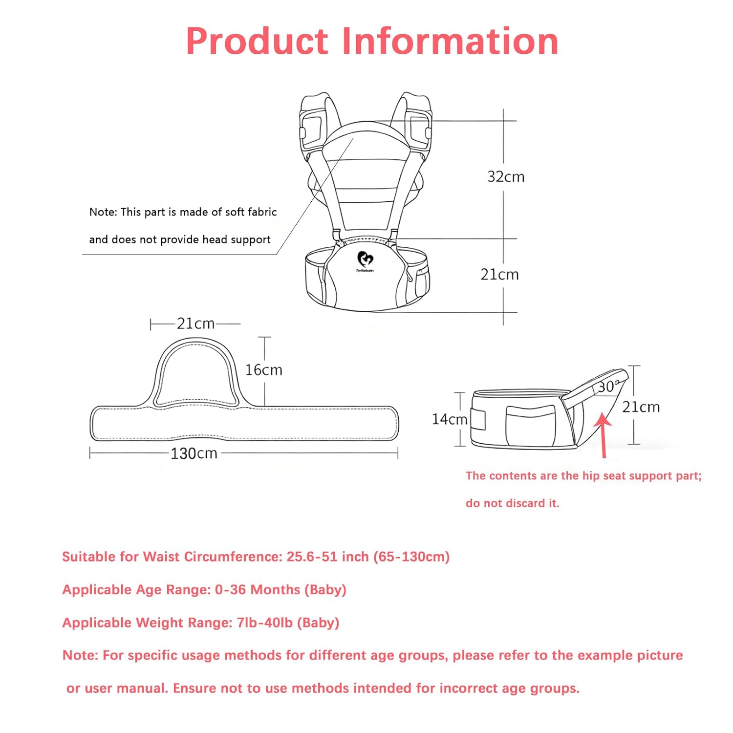 • Универсален размер: тази раница за новородено до малко дете е подходяща за деца на възраст от 0 до 36 месеца и с тегло от 3 до 20 килограма. Коланът с дължина 137 см е подходящ за родители с различна фигура.