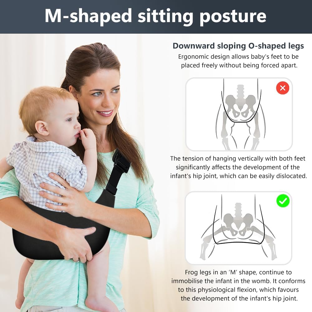 Бебешка слинг, Странична слинг за малки деца, Регулируема ергономична слинг за малки деца, Странична слинг за новородени до 0-36 месеца, Малки деца до 15 кг, Каишка за носене за малки деца