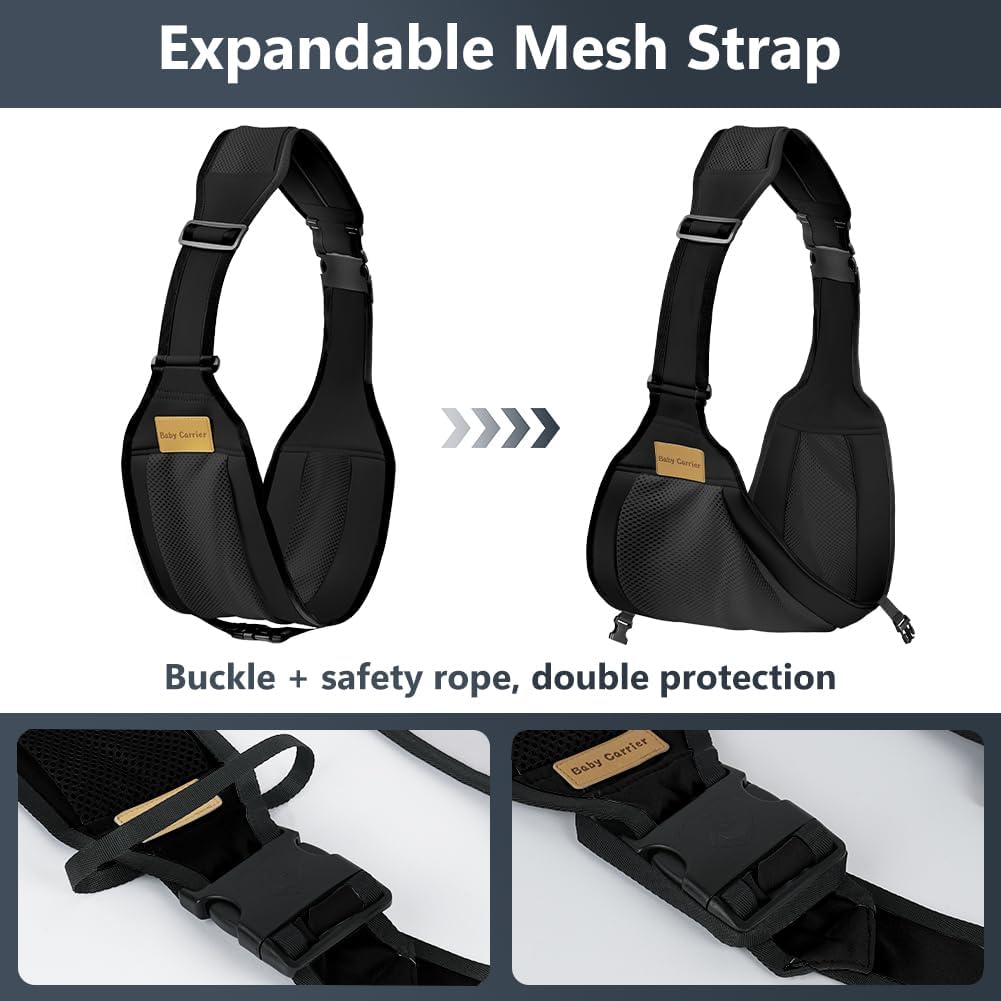 • Регулируем дизайн: презрамките са регулируеми от 120-172 см и могат да издържат до 15 кг. Независимо дали сте във фаза на възстановяване или бебето ви расте бързо, носилката може лесно да се регулира според вашите нужди, без да се притеснявате за физически промени след раждането.