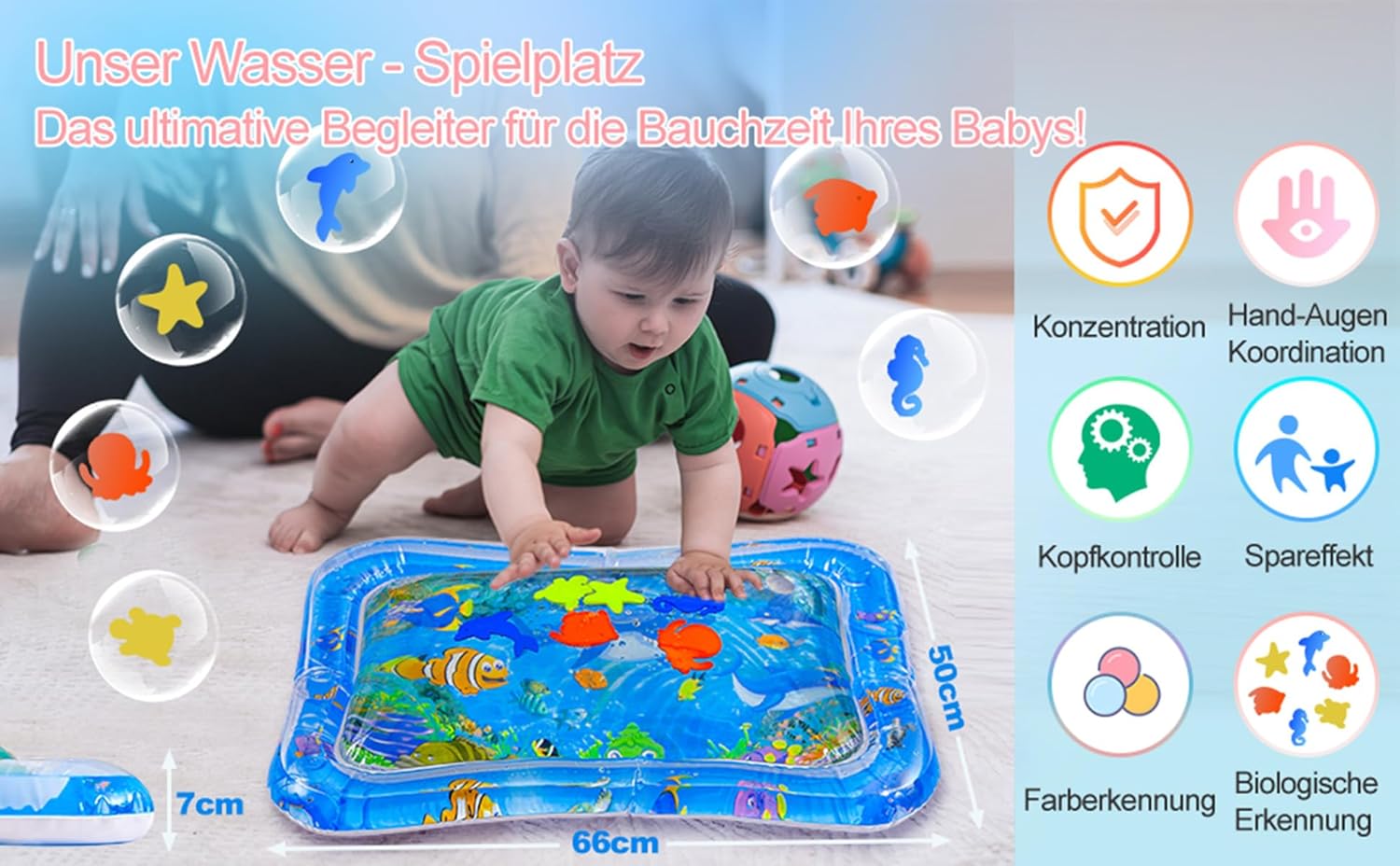 • Бебешка водна постелка без BPA | ENCOVY Водна постелка за игра Aqua Mat | Надуваема бебешка играчка Tummy Time за 3, 6, 9 месеца | Пълнеща бебешка играчка Tummy Time, 66x50 см