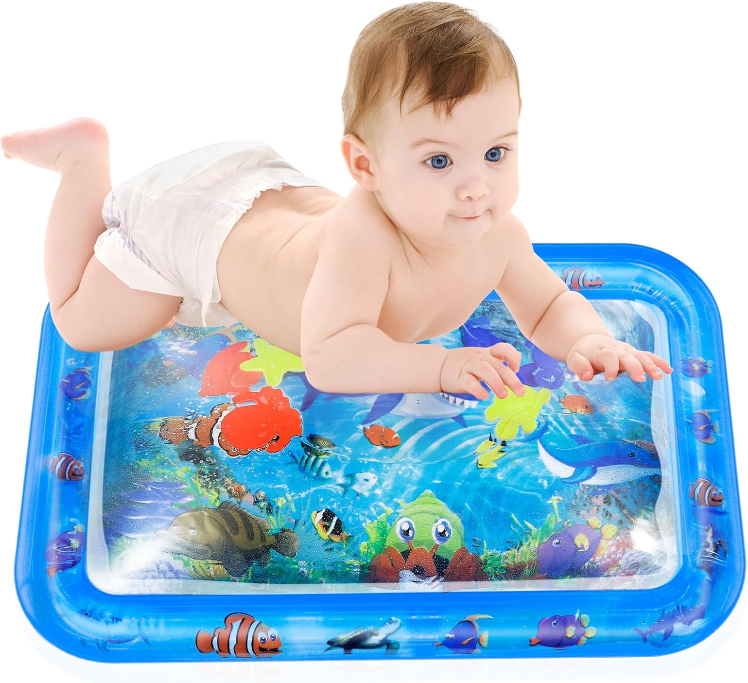 Бебешка водна постелка без BPA | ENCOVY Водна постелка за игра Aqua Mat | Надуваема бебешка играчка Tummy Time за 3, 6, 9 месеца | Пълнеща бебешка играчка Tummy Time, 66x50 см