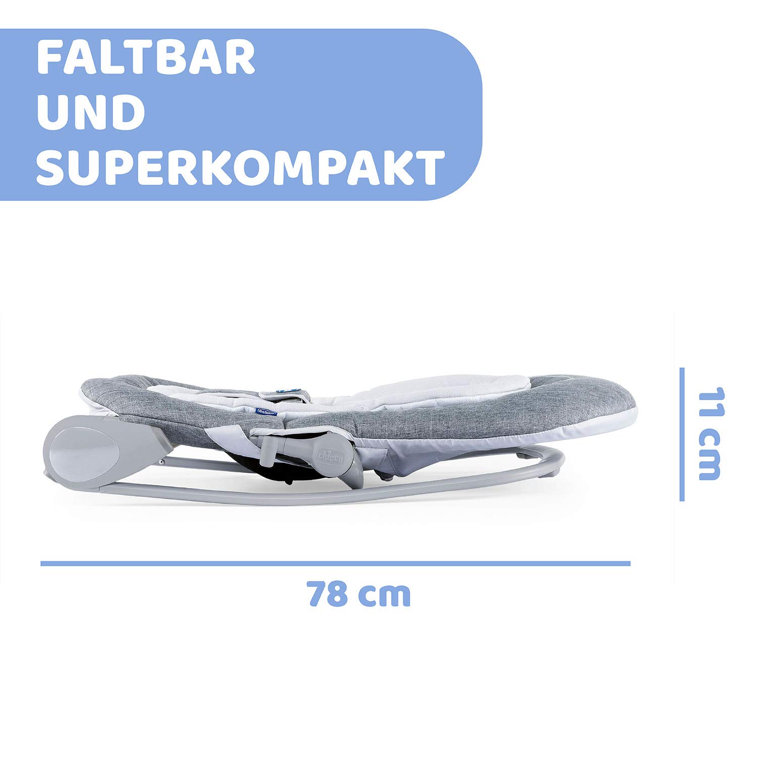 Бебешкият шезлонг Hooplà предлага безкрайно люлеене и забавление при игра за малчуганите. Играчката с иновативната си система SlideLine осигурява чудесно забавление за вашия малък член на семейството благодарение на цветни играчки и дрънкащи елементи, които могат лесно да се местят във всяка позиция, създавайки постоянно променящи се сценарии за игра. Добре подплатената повърхност за лежане на шезлонга осигурява мек комфорт при сядане. Благодарение на подложката за бебета, дори новородени могат да използват шезлонга. Презрамката на шезлонга ги държи здраво на място. Шезлонгът се заключва лесно, а облегалката може да се регулира в четири различни позиции. От 12 месеца презрамката може да се сваля и Hooplà може да се използва като първи стол за вашето дете, до тегло от 18 кг. Когато не се използва, шезлонгът се сгъва компактно за лесно съхранение. Калъфът е сваляем и може да се пере.