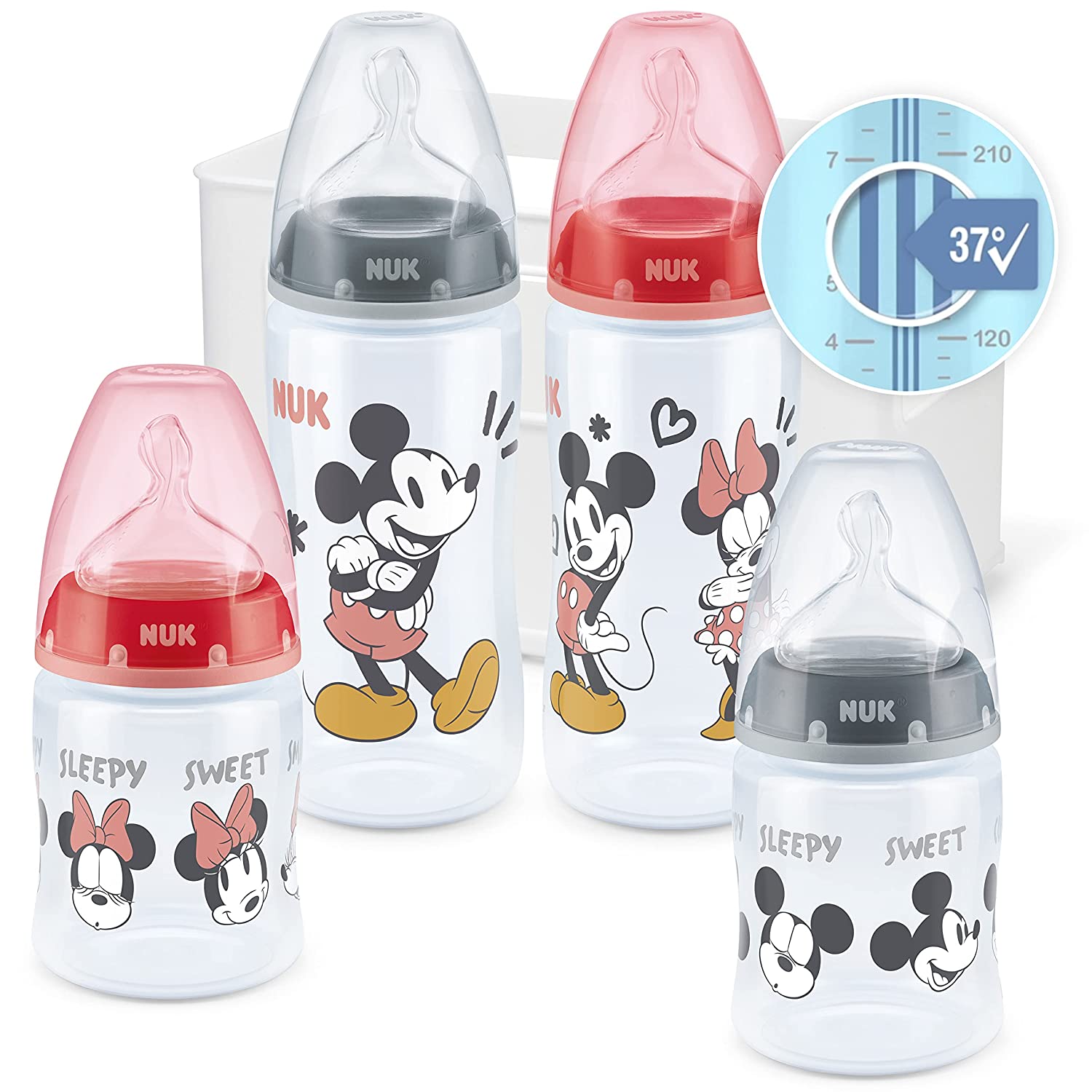 Бебешки шишета NUK First Choice+, С биберон, 300 и 150 мл, Против колики, Вграден Термометър, Без BPA, 4 броя
