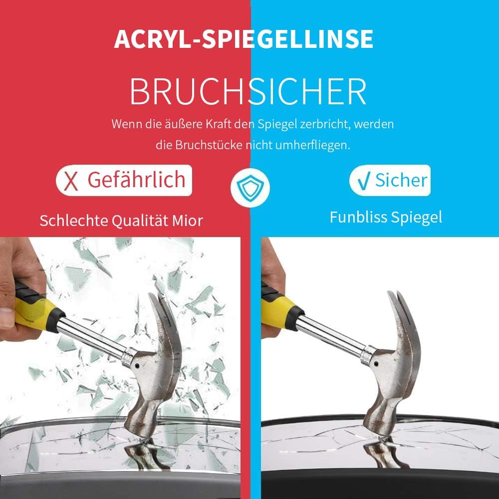 • Изработено от нечупливо акрилно стъкло и здравите презрамки осигуряват максимална безопасност. Огледалото за кола за бебе е не само практично, но и напълно безопасно за вашите бебета. Опцията с вендуза улеснява монтажа му върху различни повърхности.