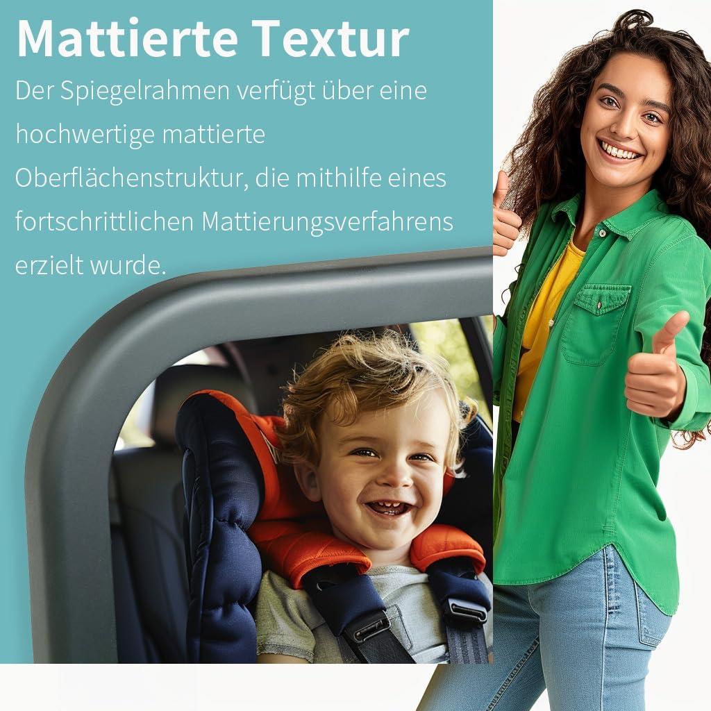 • Това задно огледало за бебешка кола ви предлага повече спокойствие по време на пътуване. Благодарение на специалната конструкция на огледалото за бебе в колата, продуктът може да се използва както за новородени, така и за по-големи деца. Той е задължителен за всяка нужда от огледало за бебе в кола.