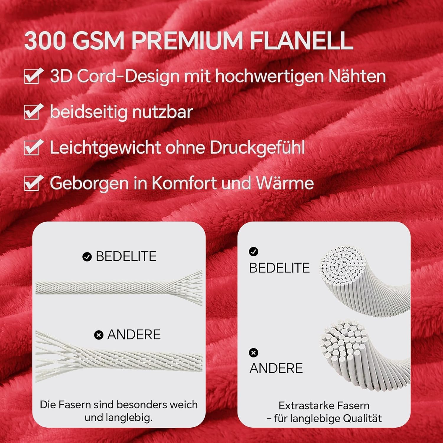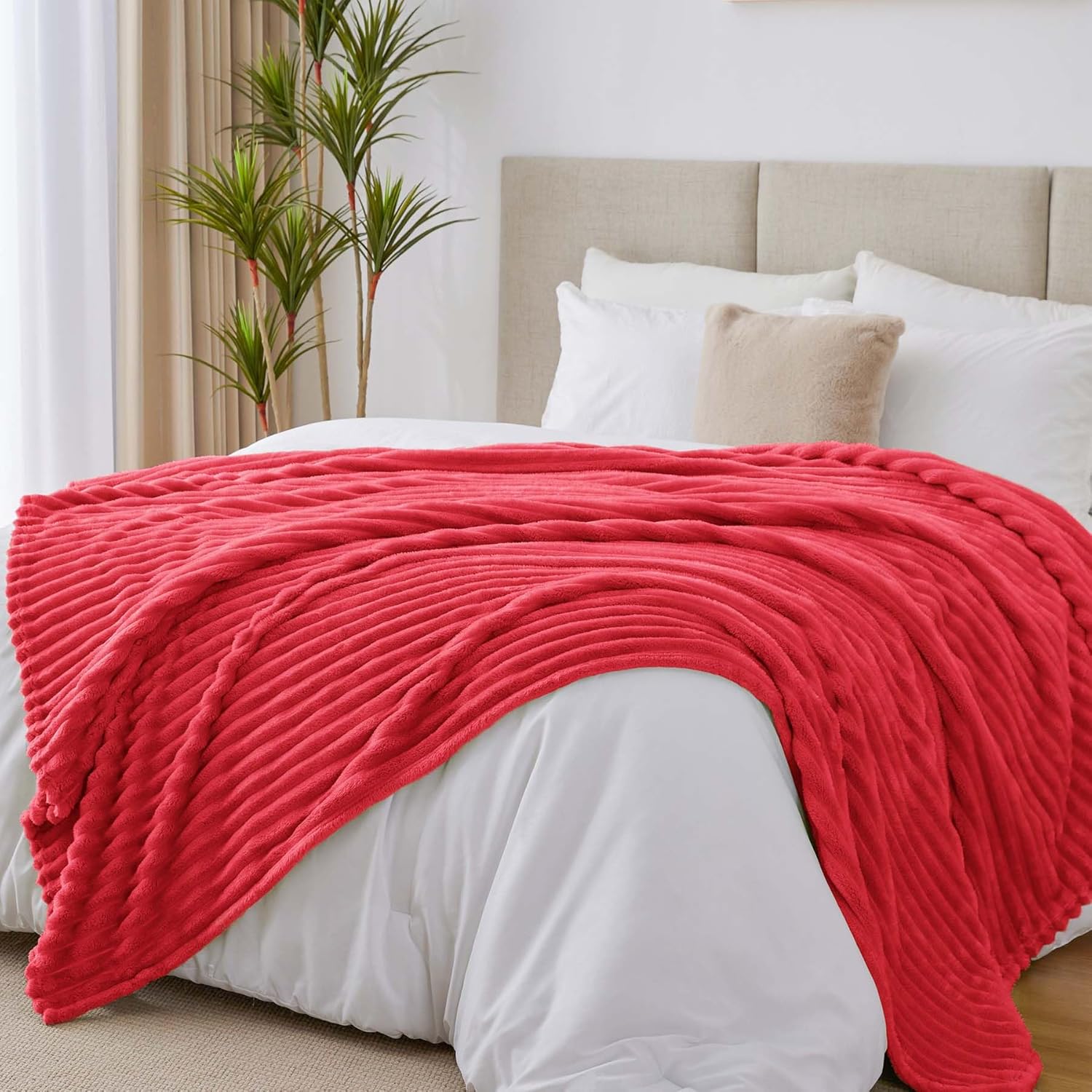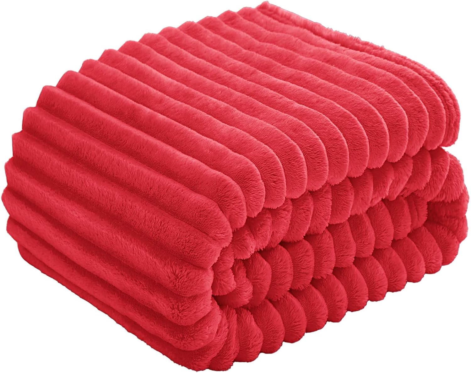 BEDELITE Пухкаво одеяло, Много голямо, Меки фланелени одеяла, Червено, 230 x 270 см за легло, Декоративни райета, Одеяло от кадифено руно като покривало за спалня, Одеяло за размер King, Широка употреба