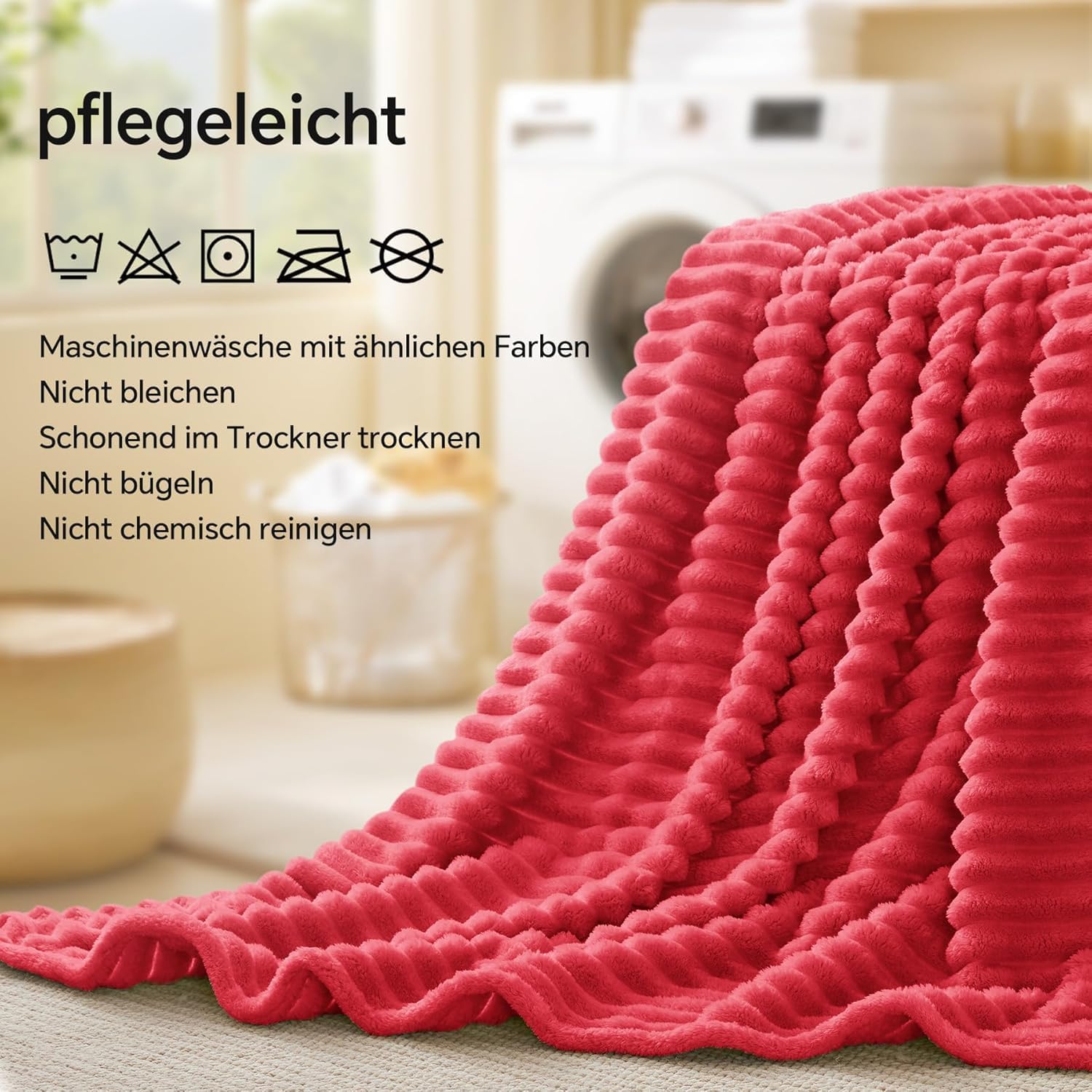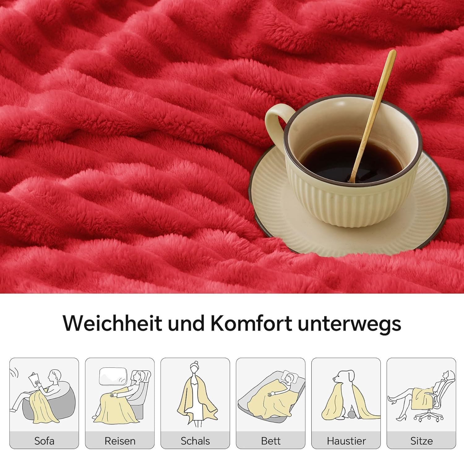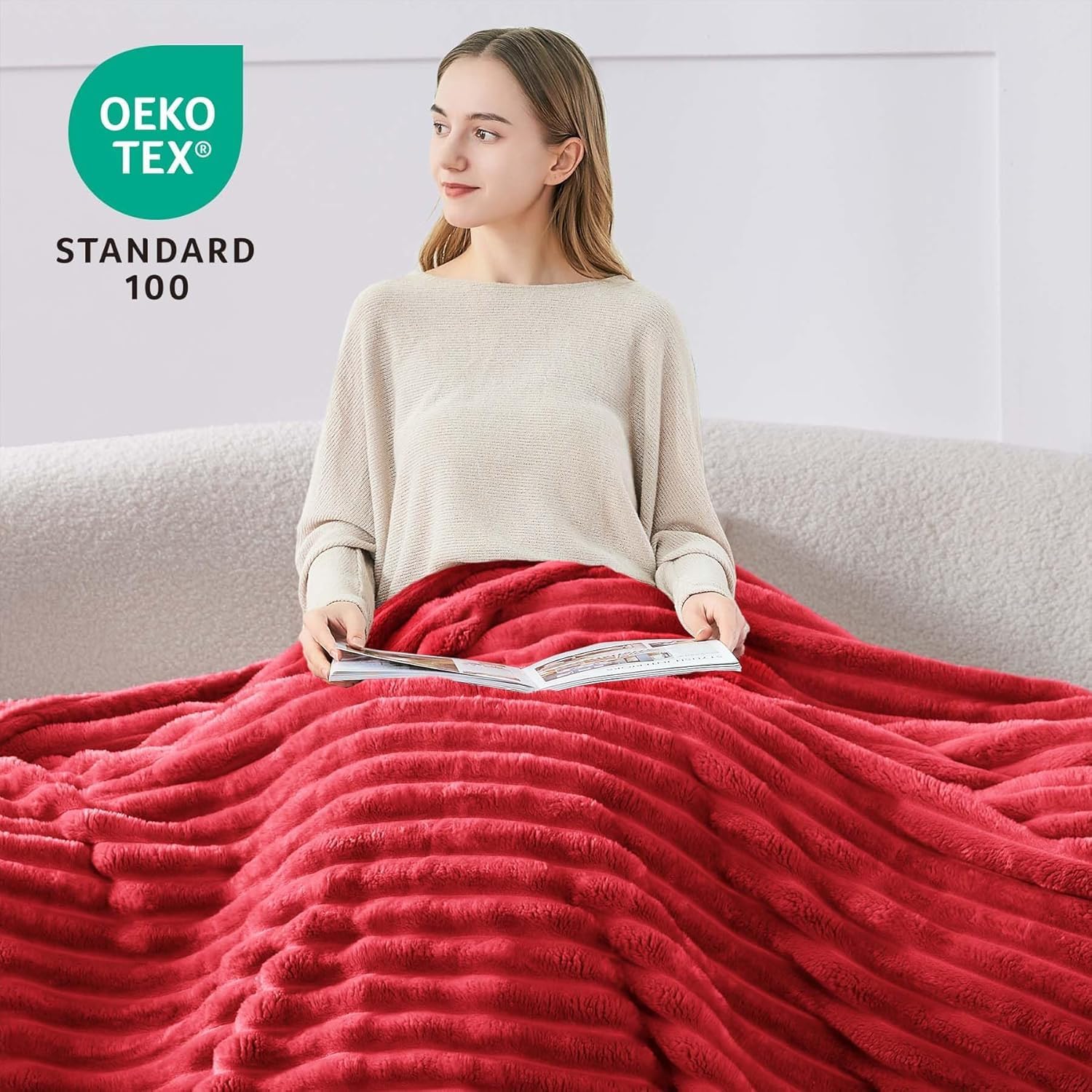 BEDELITE Пухкаво одеяло, Много голямо, Меки фланелени одеяла, Червено, 230 x 270 см за легло, Декоративни райета, Одеяло от кадифено руно като покривало за спалня, Одеяло за размер King, Широка употреба