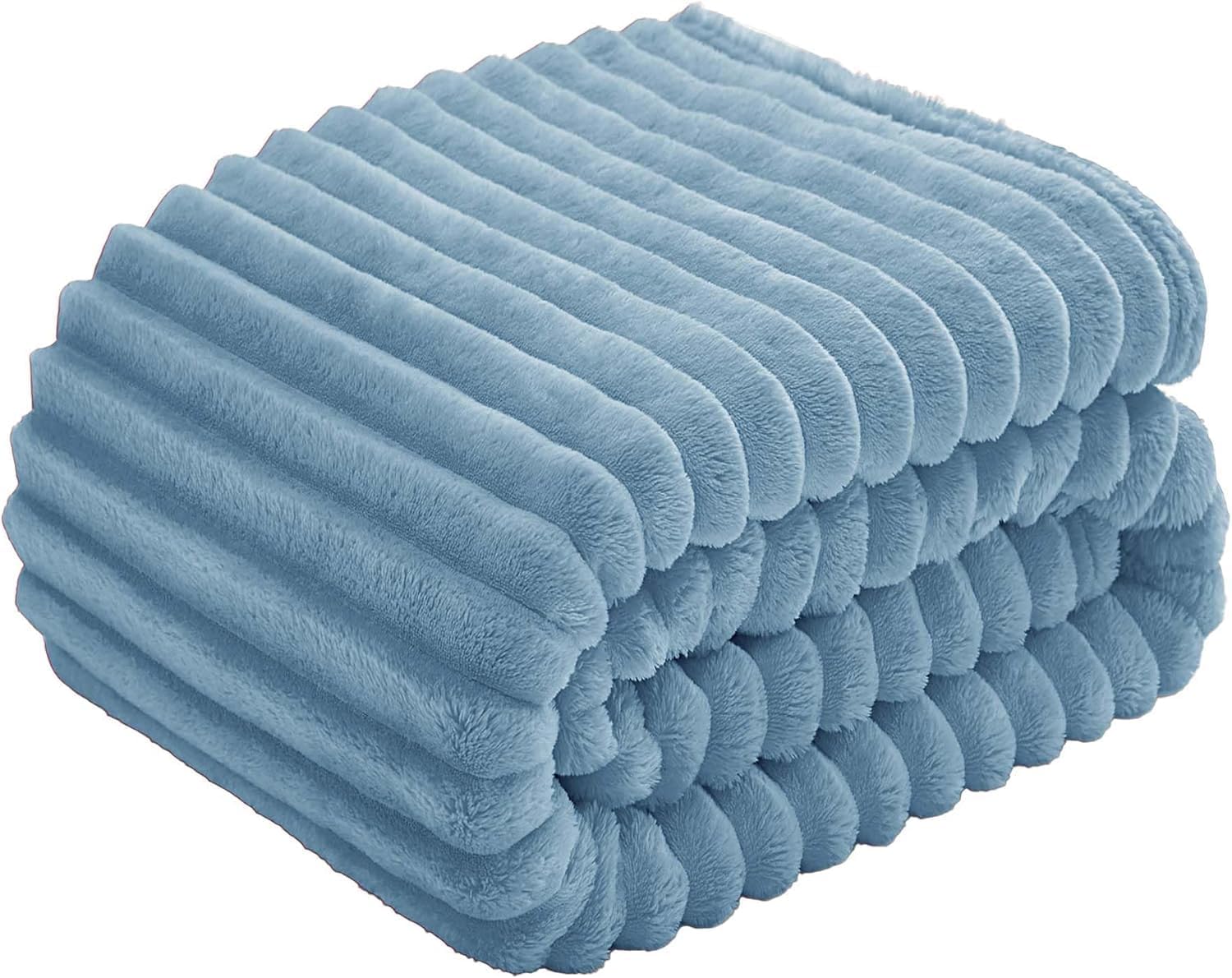 BEDELITE Пухкаво одеяло, Много голямо, Меки фланелени одеяла, Синьо, 230 x 270 см за легло, Декоративни райета, Одеяло от кадифено руно, Светлосиньо като покривало за спалня, Одеяло King
