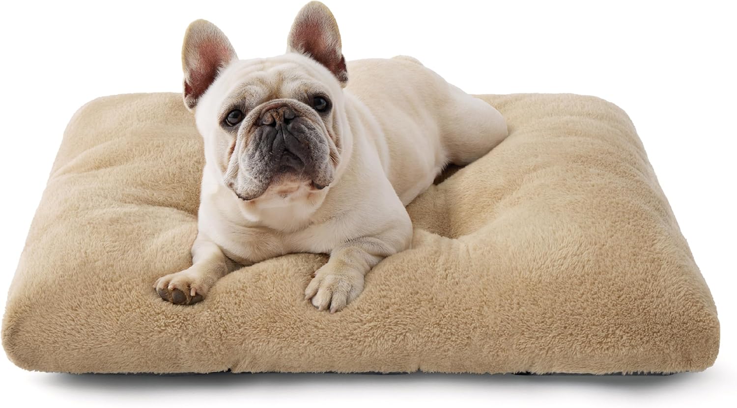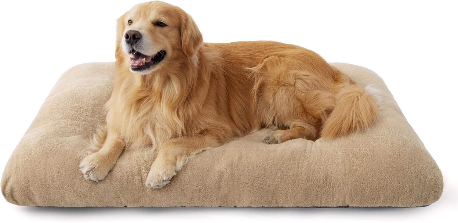 BEDSURE Кучешко легло с възглавница за големи кучета, което може да се пере, успокояващ матрак за кучета с неплъзгаща се основа, топла възглавница за големи домашни любимци, камила, 74 x 53 x 8 см