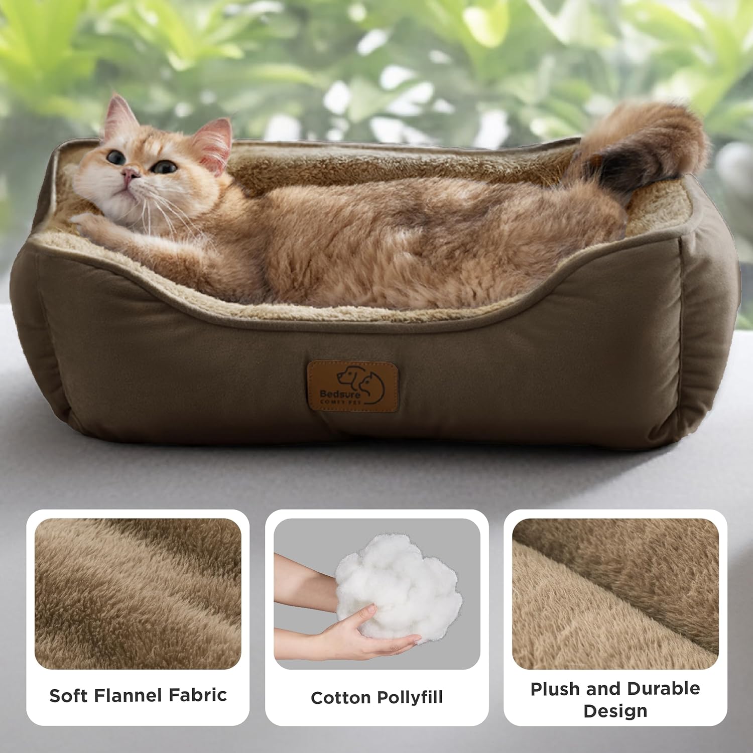 BEDSURE Легло за котки, което може да се пере - 51 x 41 см Кошница за котки за вътрешна употреба с неплъзгаща се основа, Квадратно легло за малки кучета с мек ръб, Кафяво