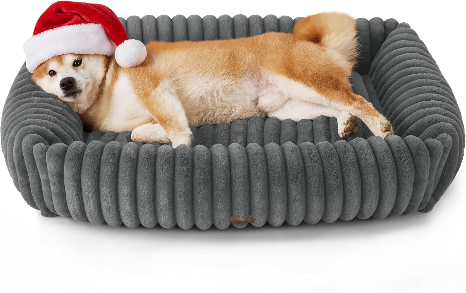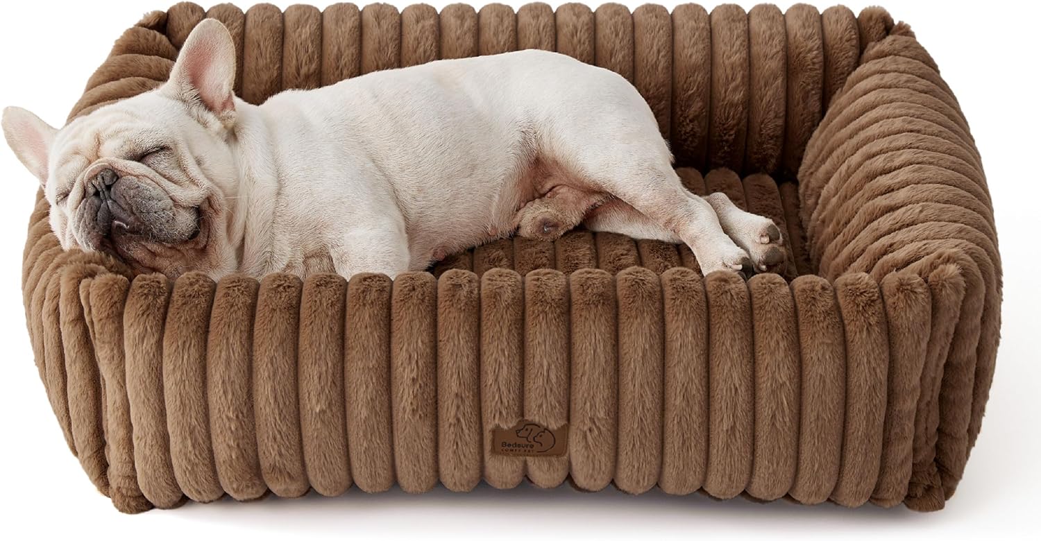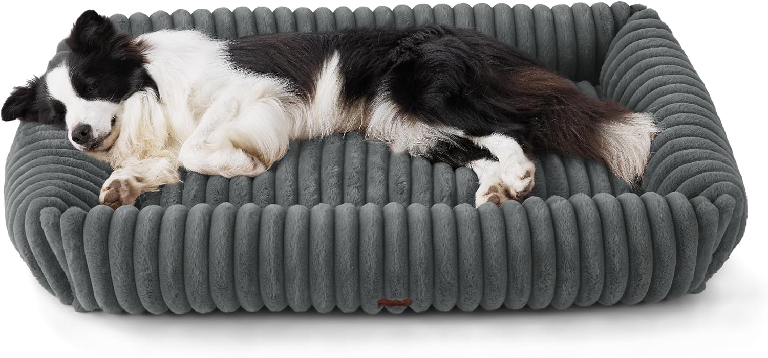 BEDSURE Легло за кучета, което може да се пере, за големи кучета - 109 x 76 x 20 см Мека ортопедична кошница за кучета с удобен полар, неплъзгащо се легло за кучета с висок ръб в кафяво