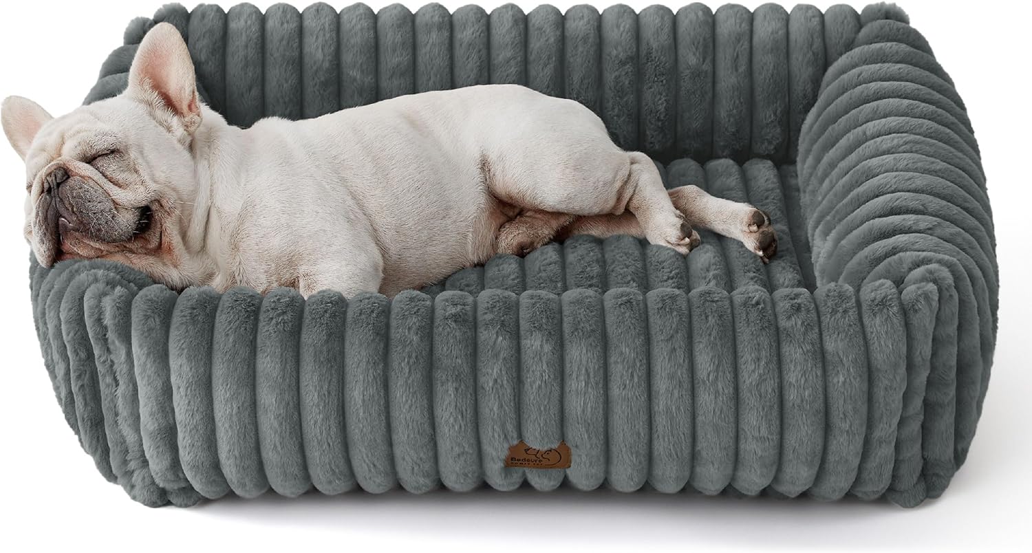• ПОДДЪРЖАЩИ ПОВДИГНАТИ СТРАНИ Повдигнатите страни осигуряват уютен кът за главата и врата на вашия домашен любимец, което спомага за спокоен сън. Сместа 2:1 от натрошена пяна и полиестерни влакна осигурява перфектно сцепление и комфорт за домашни любимци от всякакъв размер.
