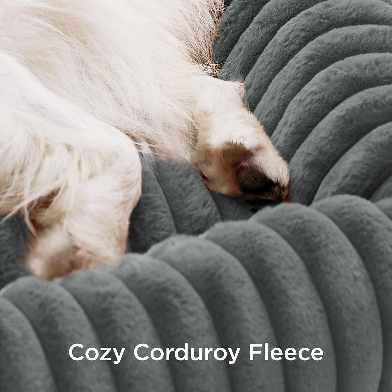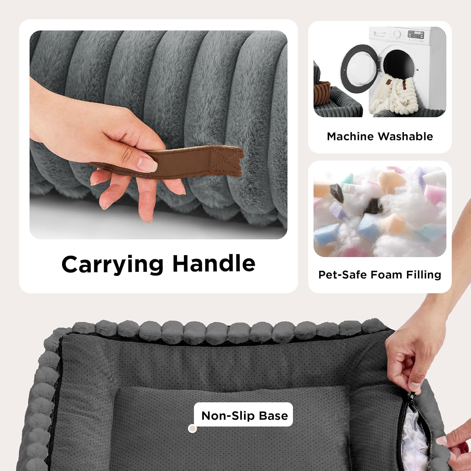 • ПОДДЪРЖАЩИ ПОВДИГНАТИ СТРАНИ Повдигнатите страни осигуряват уютен кът за главата и врата на вашия домашен любимец, което спомага за спокоен сън. Сместа 2:1 от натрошена пяна и полиестерни влакна осигурява перфектно сцепление и комфорт за домашни любимци от всякакъв размер.