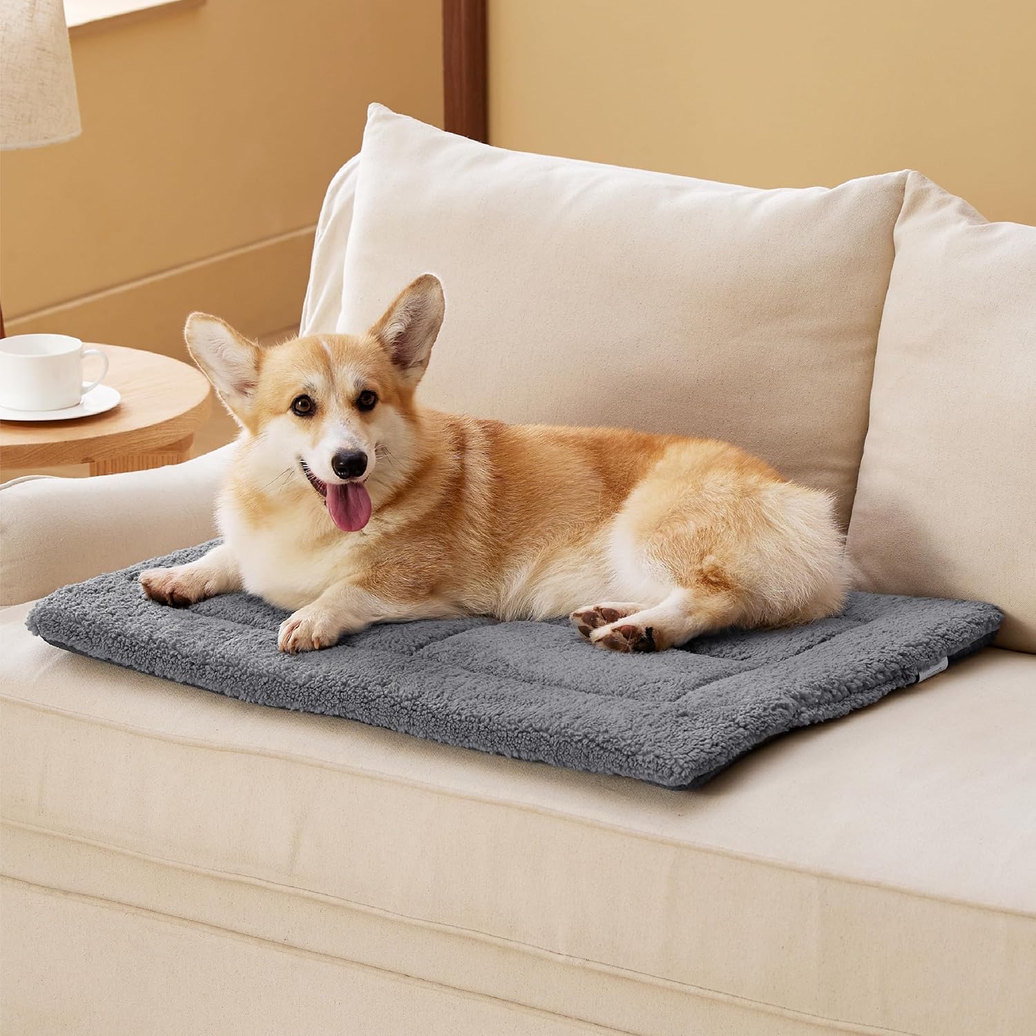 BEDSURE Постелка за кучета, която се пере, за средни кучета - 74 x 46 см, Възглавница за кучета, за средни кучета с пълнеж от пяна с висока плътност, Плюшен матрак за кучета от шерпа, който се пере, сив