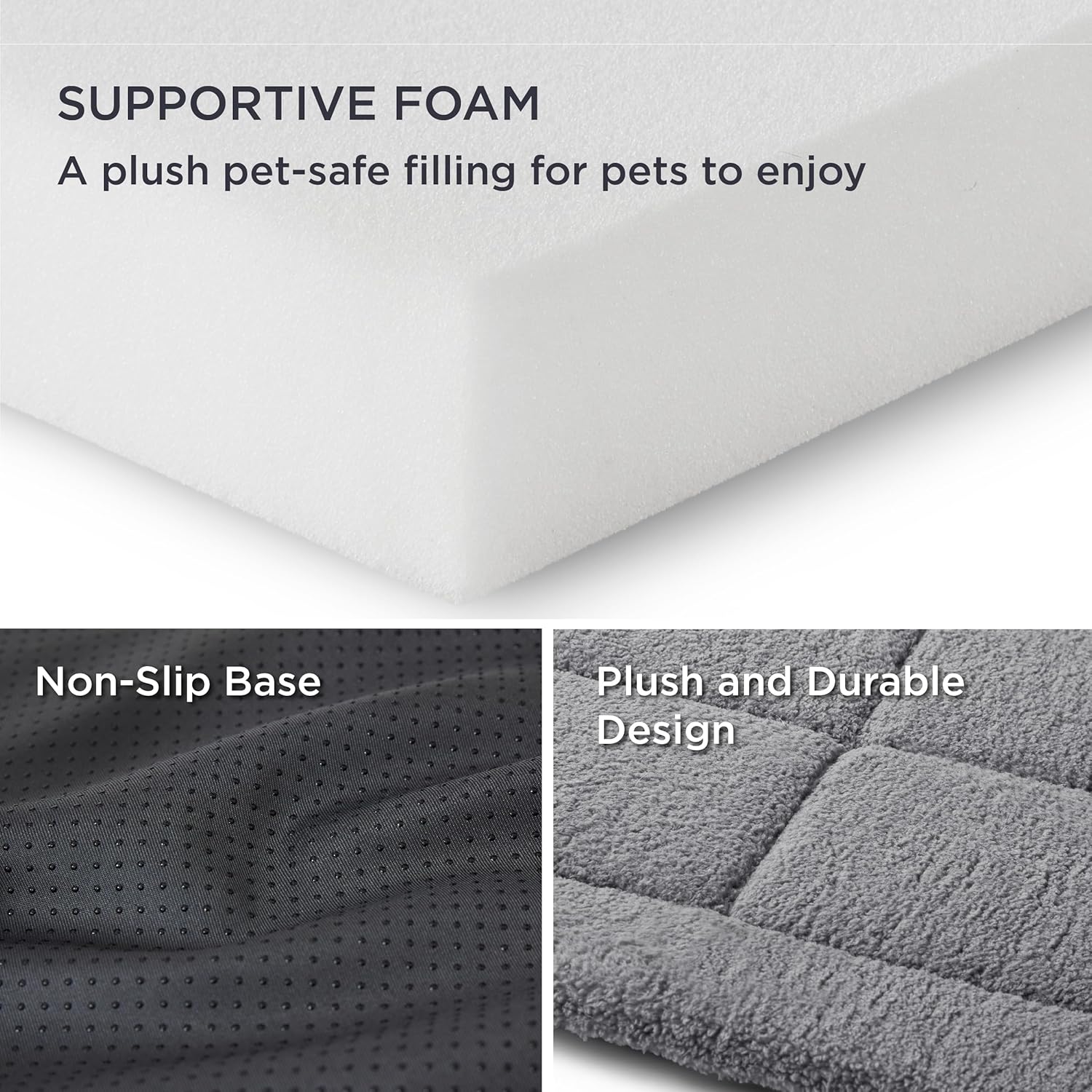 • ИЗКЛЮЧИТЕЛЕН КОМФОРТ ЗА ДОМАШНИ ЛЮБИМЦИ Подобрете релаксацията на вашия домашен любимец с подложката за домашни любимци Bedsure Fleece Foam. Изработена от ултра мек полар, тази подложка осигурява целогодишен комфорт. Неплъзгащата се основа добавя допълнителен слой сигурност, осигурява стабилно захващане на подложката, позволявайки на вашия домашен любимец да почива безопасно, без риск от подхлъзване.