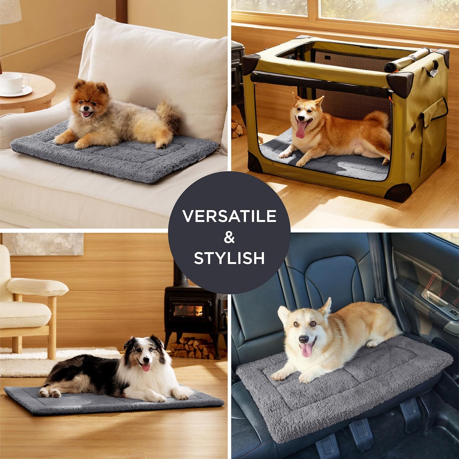 • УНИВЕРСАЛЕН И ПРЕНОСИМ ДИЗАЙН Проектиран за комфорт и удобство Благодарение на своята гъвкавост, това легло за кучета се побира в клетки, преносими колички и превозни средства, осигурявайки допълнителен комфорт навсякъде в дома ви. То е леко и лесно за носене и е идеално за пътуване, за да накара вашия домашен любимец да се чувства като у дома си навсякъде.