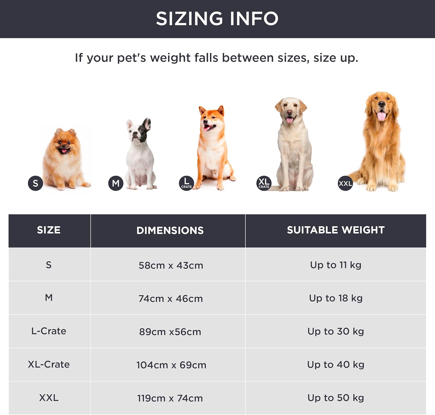 • ПЕРФЕКТНО ПОДХОДЯЩО ЗА ВСИЧКИ ПОРОДИ Нашата постелка за домашни любимци Bedsure се предлага в пет размера от S до XXL и е подходяща за всички породи. Различните размери гарантират перфектно прилягане за вашия домашен любимец, независимо дали обича да се изпъва или свива на кълбо.