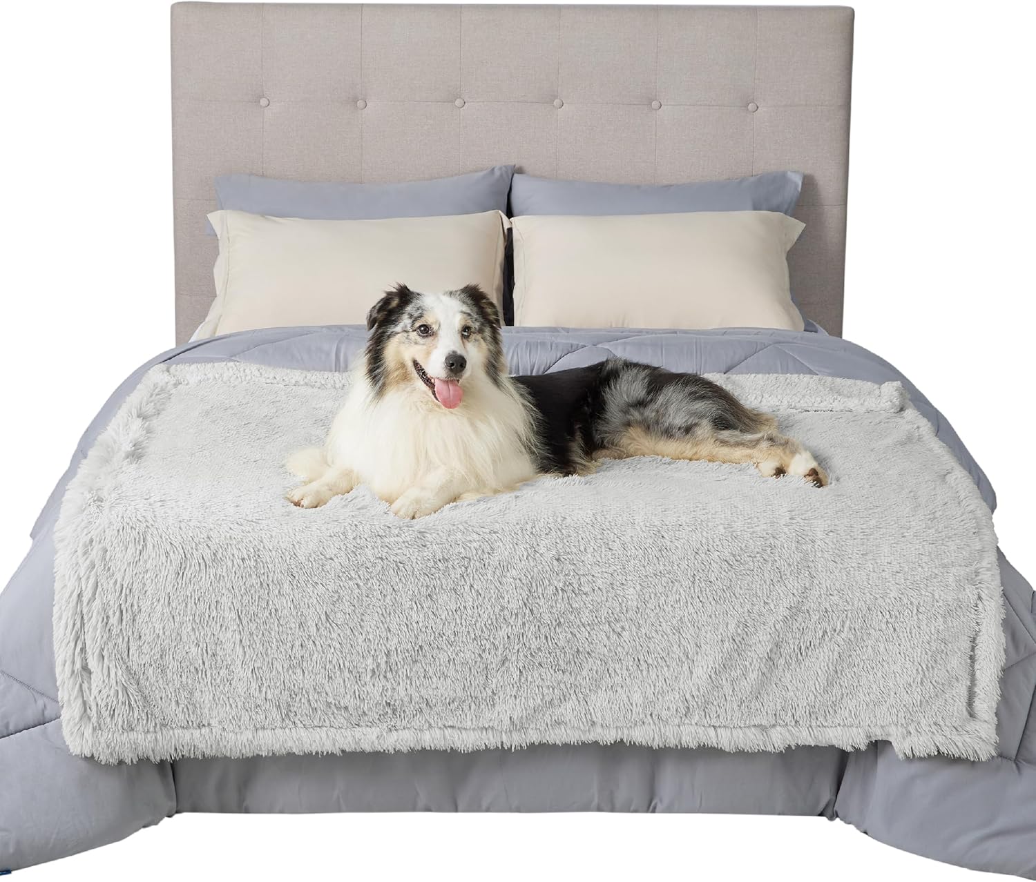 BEDSURE Водоустойчиво одеяло за кучета за големи кучета - 127 x 152 см дълго Плюшено одеяло за кучета, което може да се пере Пухкаво и меко защитно одеяло за кучешки диван Светло сиво