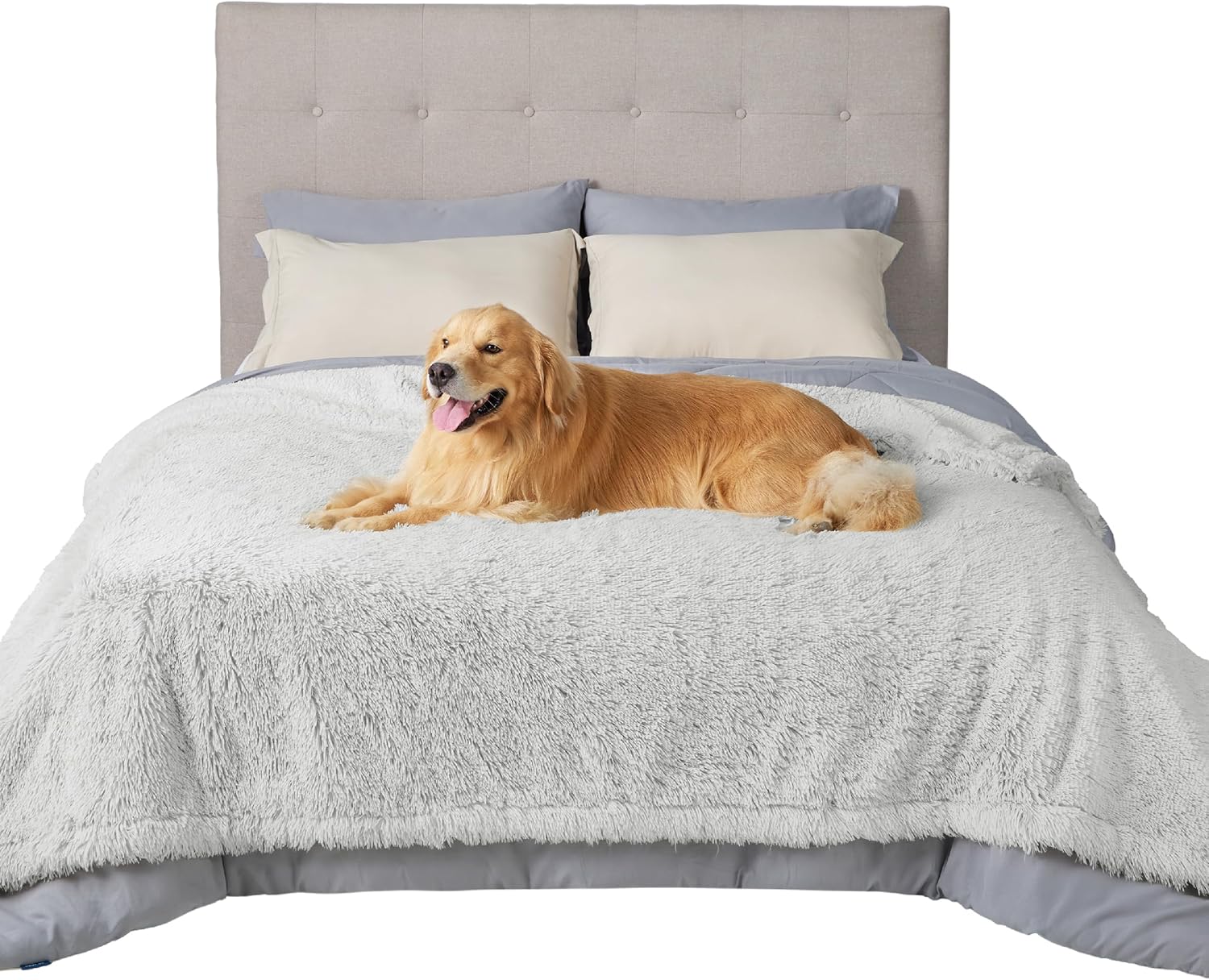 BEDSURE Водоустойчиво одеяло за кучета за големи кучета - 152 x 203 см дълго Плюшено одеяло за кучета, което може да се пере Пухкаво и меко защитно одеяло за кучешки диван Светло сиво