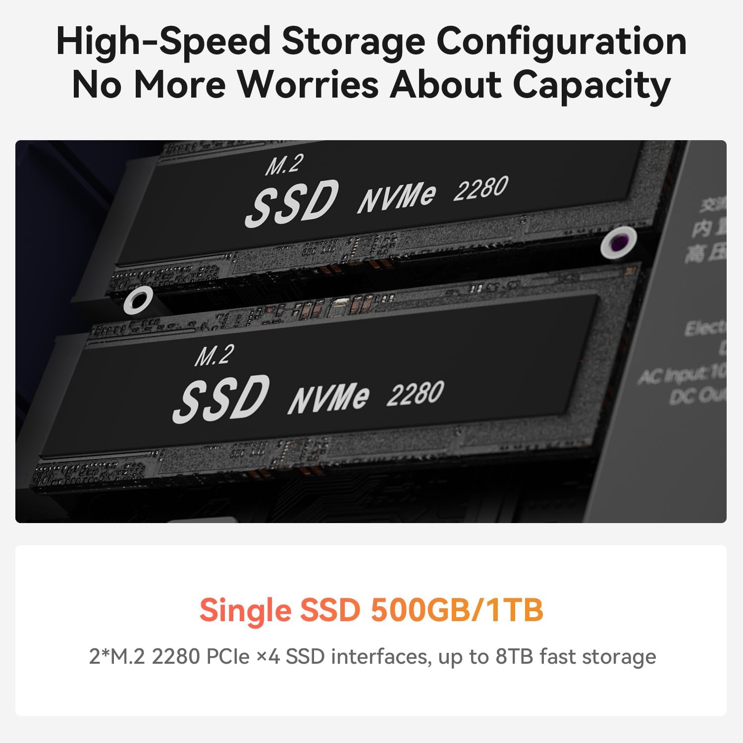 • ????【Голяма памет и мащабируемост】Мини компютърът Beelink разполага с двуканална 32GB LPDDR5 RAM памет (16G*2). А 1TB M.2 2280 PCIe 4.0 SSD поддържа надграждане до 4TB (не е включено).