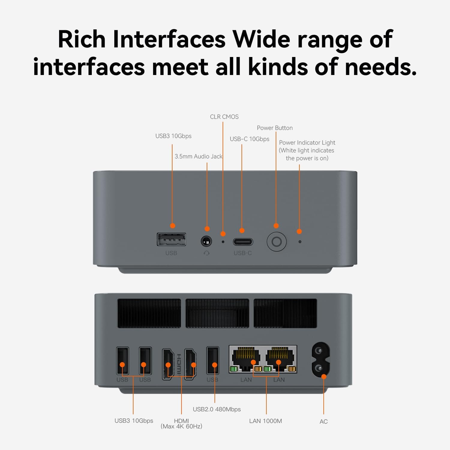 • ????【WiFi 6 & BT 5.2 & Dual 1000M LAN】Компютърът Beelink е оборудван с два гигабитови Ethernet порта и поддържа WiFi 6 със скорост на предаване до 2,4 Gbps, предлагайки ниска латентност и висока скорост. Bluetooth 5.2 осигурява стабилна връзка с вашите Bluetooth устройства и поддържа бюрото ви подредено.