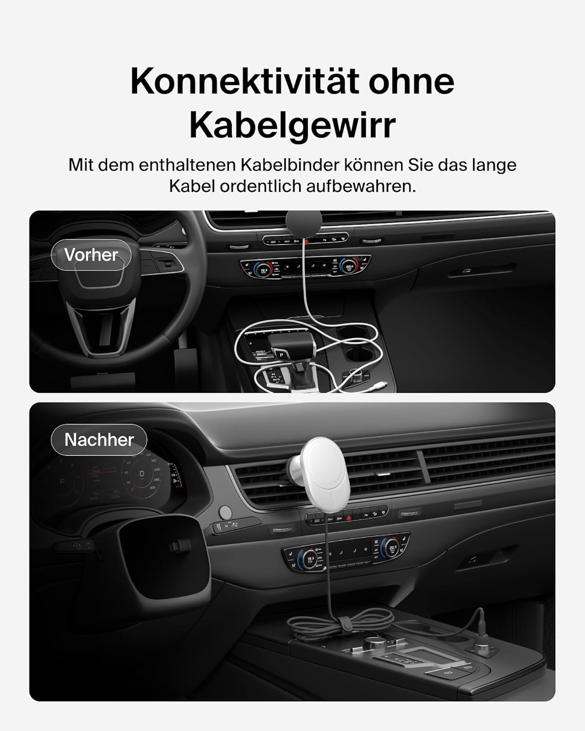 • УДОБЕН ВОДАЧ ЗА КАБЕЛ Това магнитно зарядно за кола с монтаж за вентилационен отвор разполага с удобна кабелна връзка и държач за кабел отзад, за да съхранявате кабела под ръка, без да се заплита.