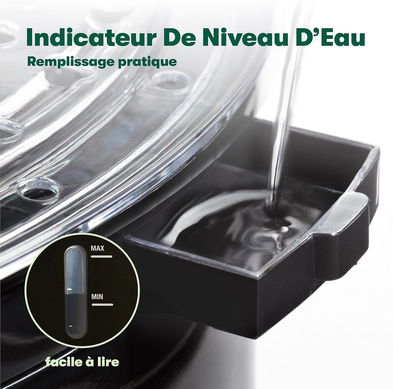 • Лесен за отчитане индикатор за нивото на водата: край на догадките при пълнене! Параходът за зеленчуци BELLA има ясен индикатор, който показва точно нивото на водата, така че можете удобно да пълните.