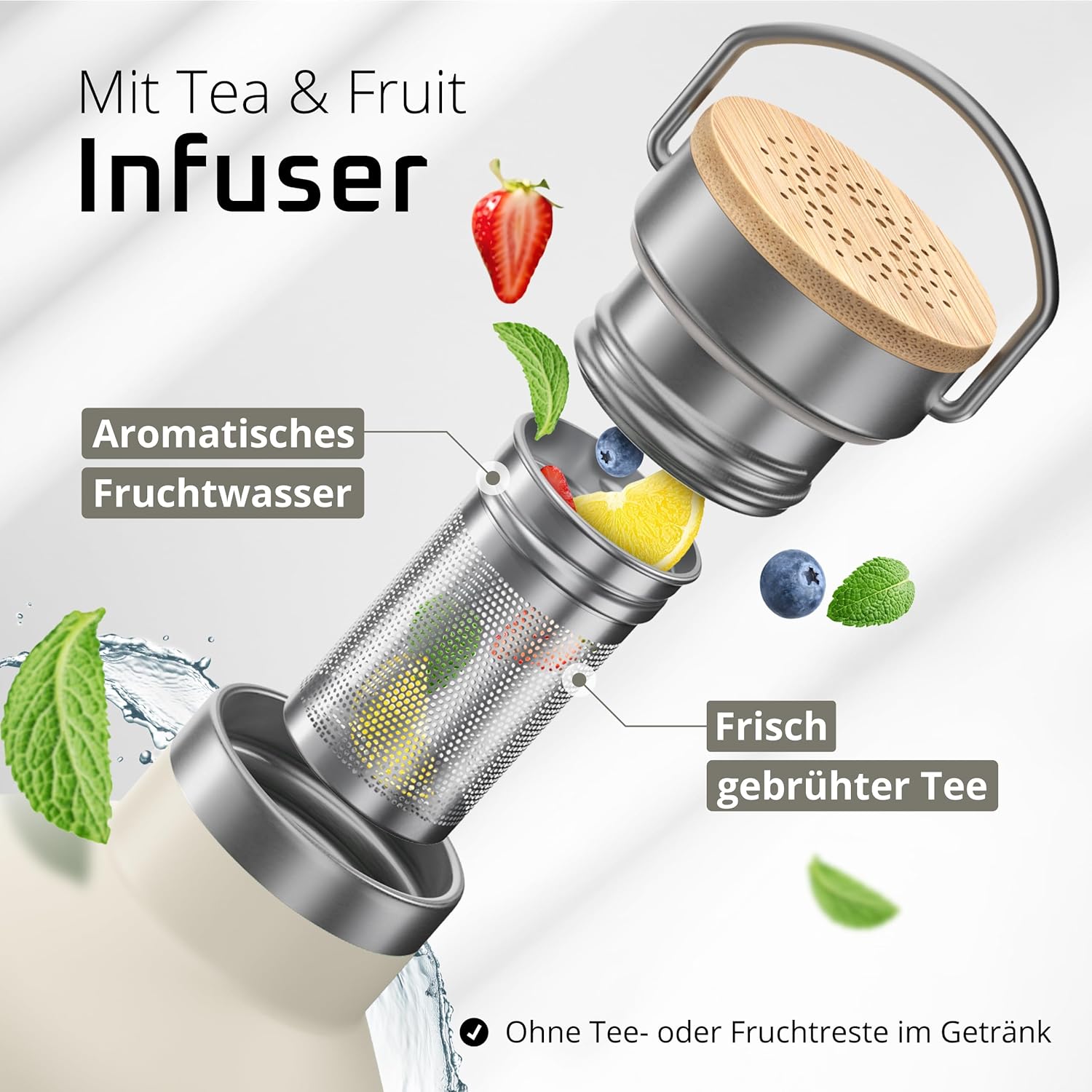 • Премиум инфузер, комплект за чай и плодове – Превърнете бутилката си за пиене в инфузер за чай или плодове за нула време и се насладете на прясно приготвен чай или пресни плодови шприцове навсякъде – без остатъци от чай или плодове да попаднат в напитката ви.