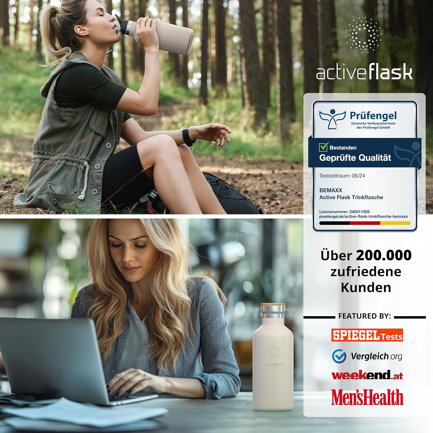 • 100% неръждаема стомана | 100% без BPA (бисфенол А) – Висококачествената полирана неръждаема стомана 18/8 не абсорбира миризми или вкусове. Сертификатите от FDA (Агенция по храните и лекарствата на САЩ) и LFGB (Тестване за контакт с храни) гарантират, че съставът, миризмата и/или вкусът на вашите напитки няма да бъдат засегнати по никакъв начин. Всички капачки на бутилки не съдържат бисфенол А и фталати, което е вредно за вашето здраве. За модели с прахово покритие и уплътнения препоръчваме ръчно миене.