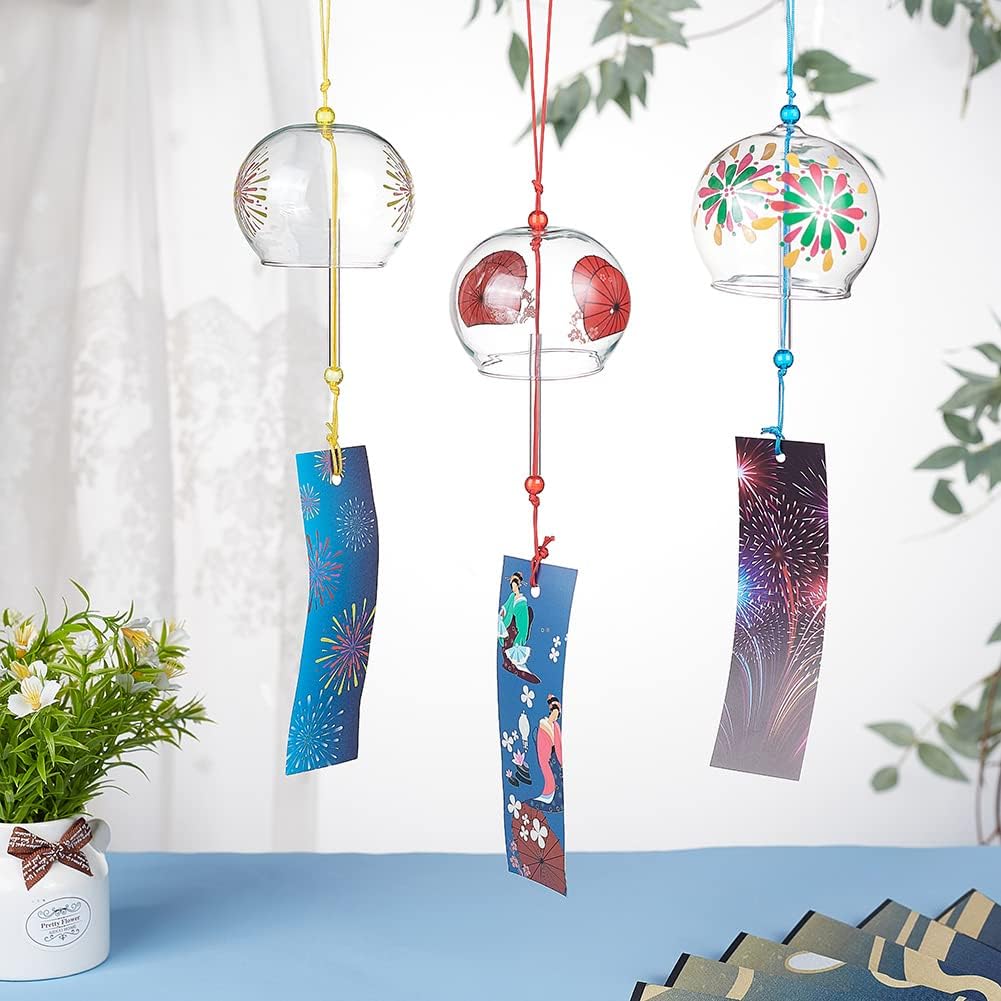 • [Вятърни камбанки в японски стил]: Включва ръчно изработени стъклени камбанки в 3 цвята - розов, червен и син, подходящи за ежедневна декорация.