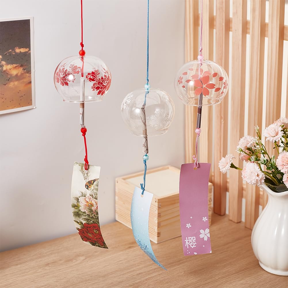 • [Вятърни камбанки в японски стил]: Включва ръчно изработени стъклени камбанки в 3 цвята - розов, червен и син, подходящи за ежедневна декорация.