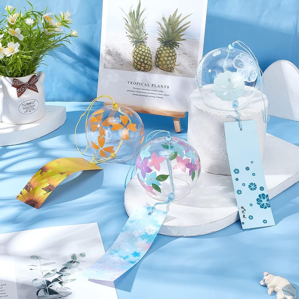 BENECREAT 3 бр. японски вятърни камбанки, цветни вятърни камбанки, златни, сини, цветни ръчно изработени стъклени висулки за сватбен фестивал, подарък, градински прозорец за вътрешна или външна употреба