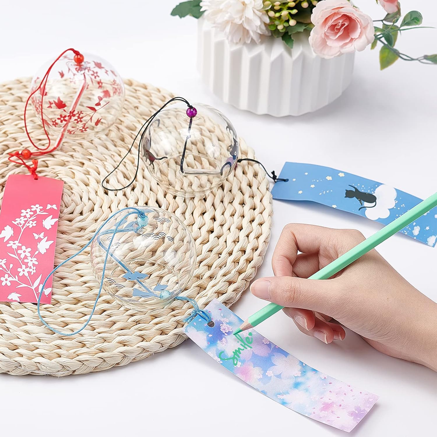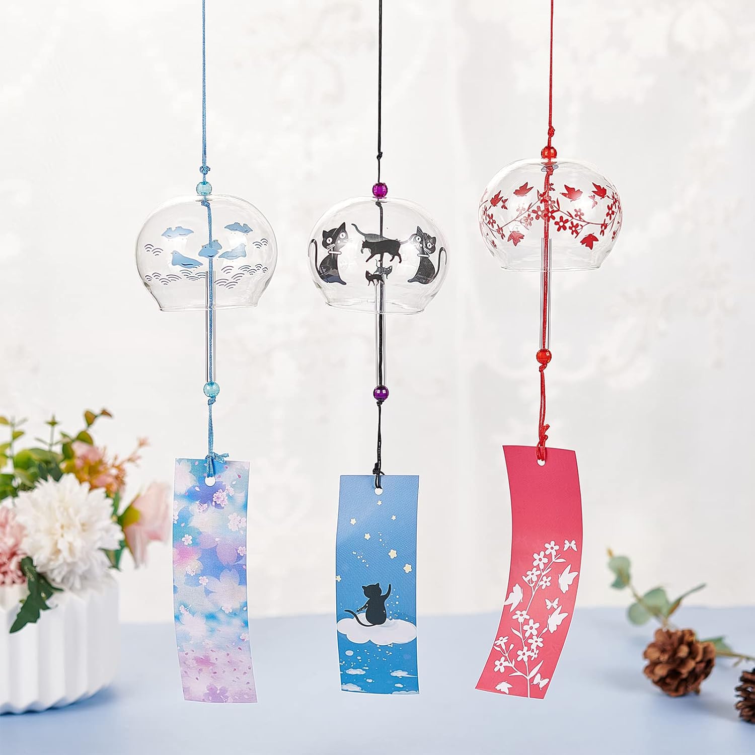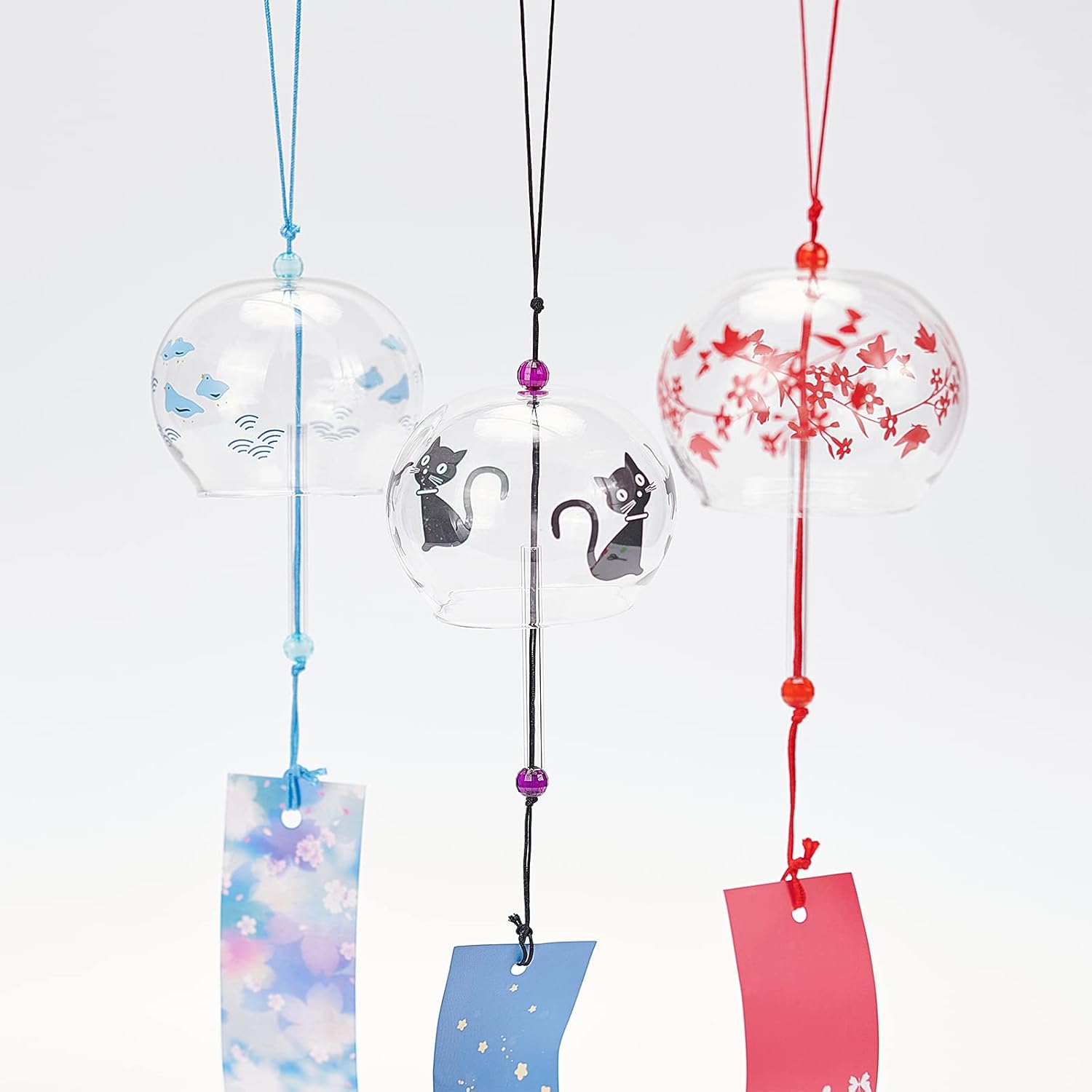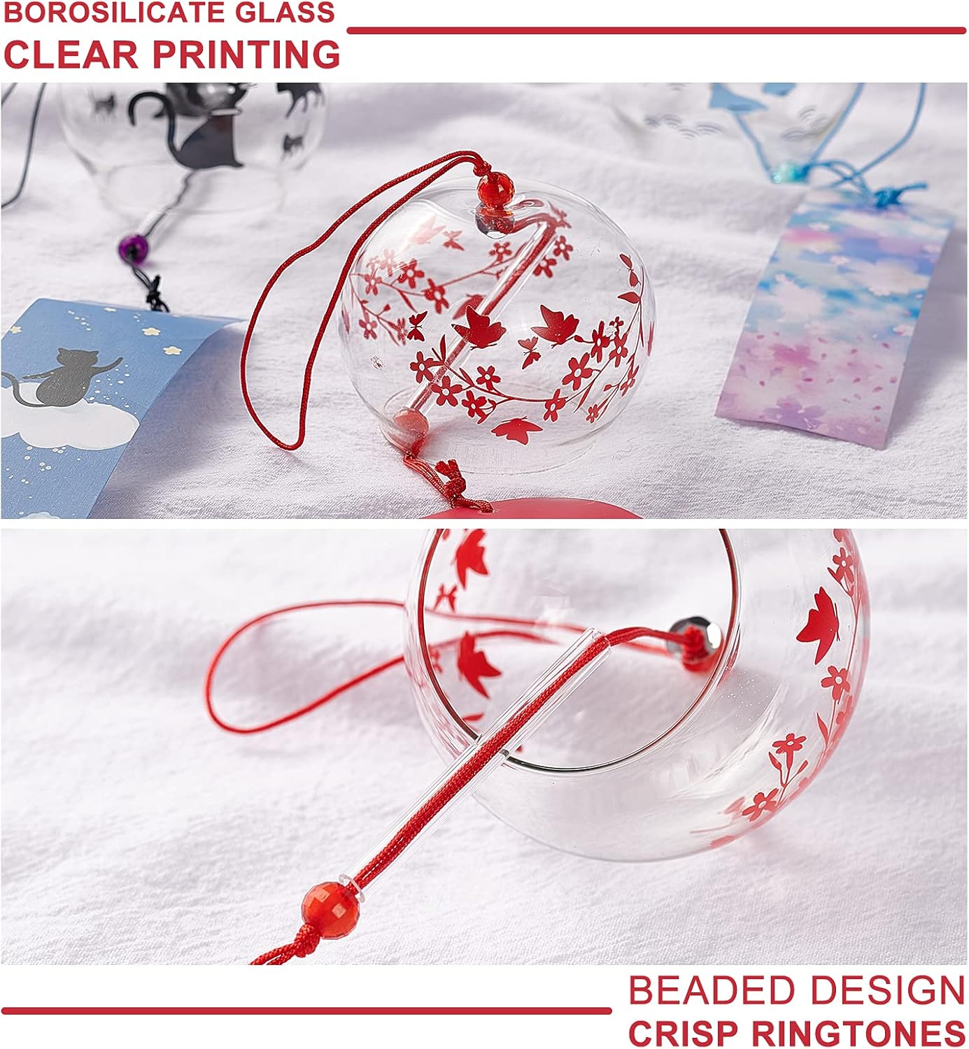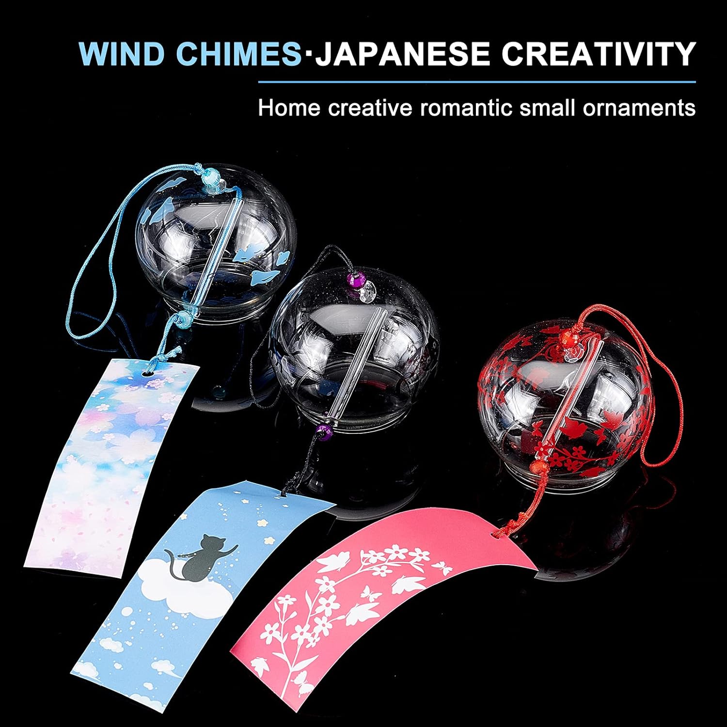 • [Вятърни камбанки в японски стил]: Включва ръчно изработени стъклени камбанки в 3 цвята - розов, червен и син, подходящи за ежедневна декорация.