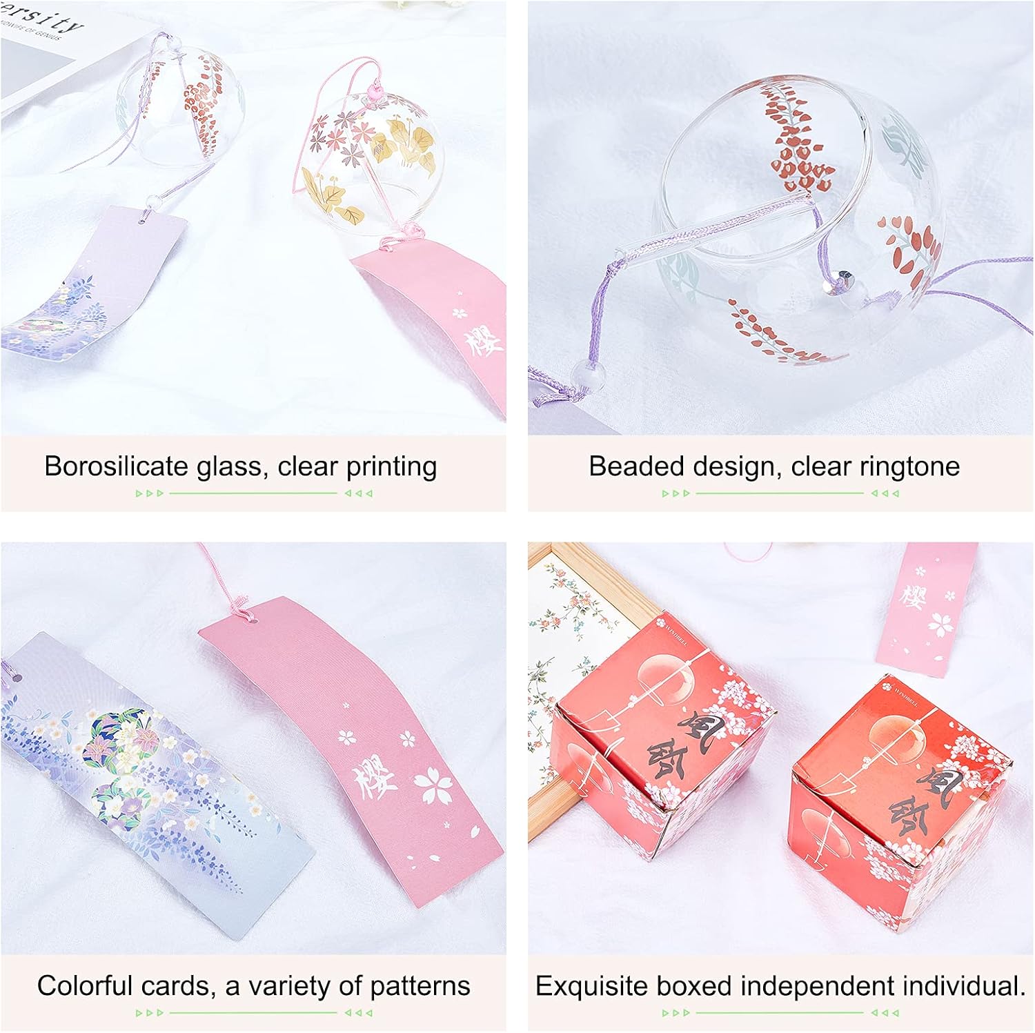 • [Вятърни камбанки в японски стил]: Включва ръчно изработени стъклени камбанки в 3 цвята - розов, червен и син, подходящи за ежедневна декорация.