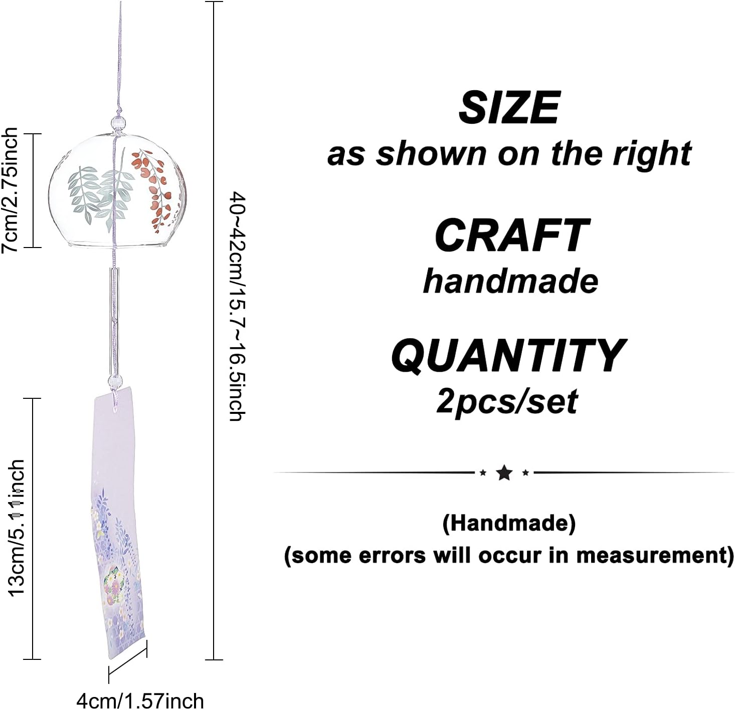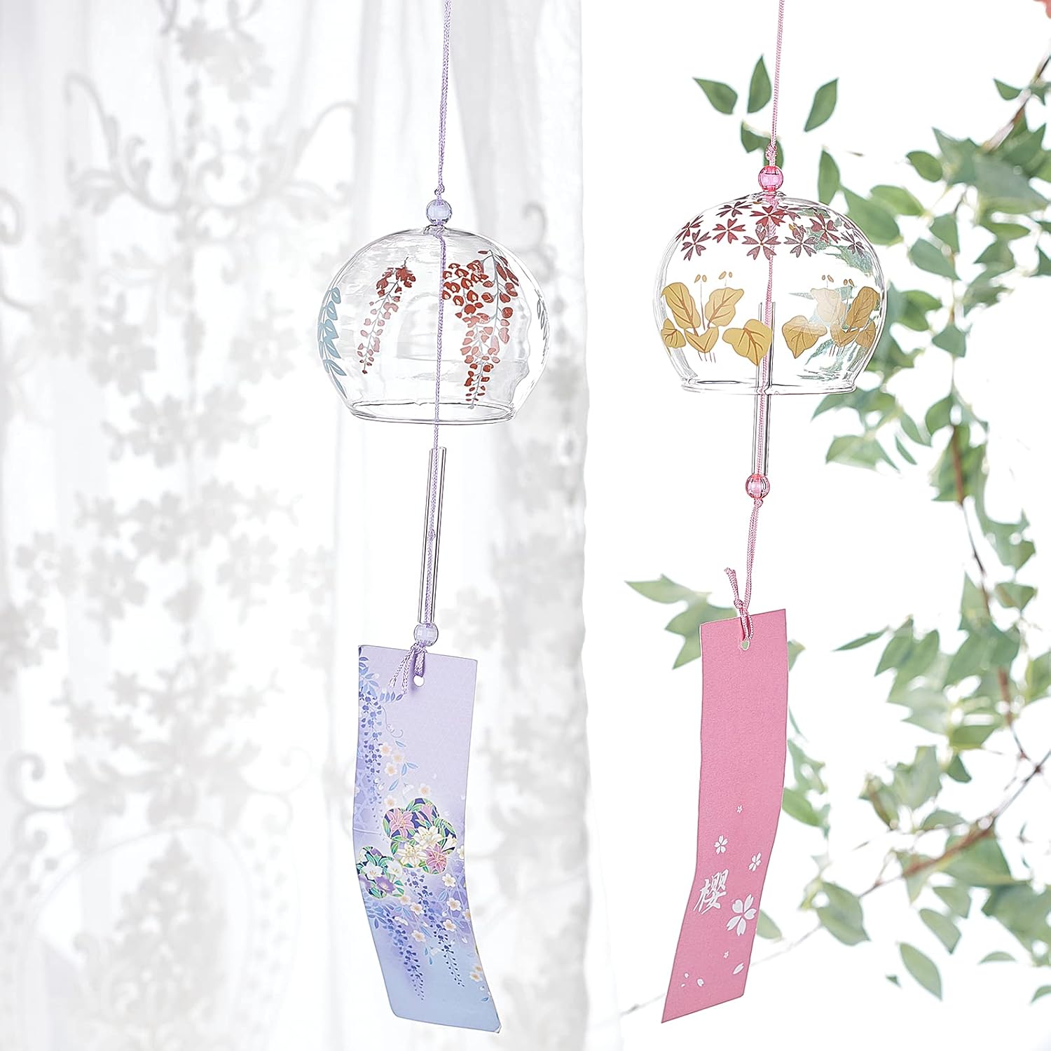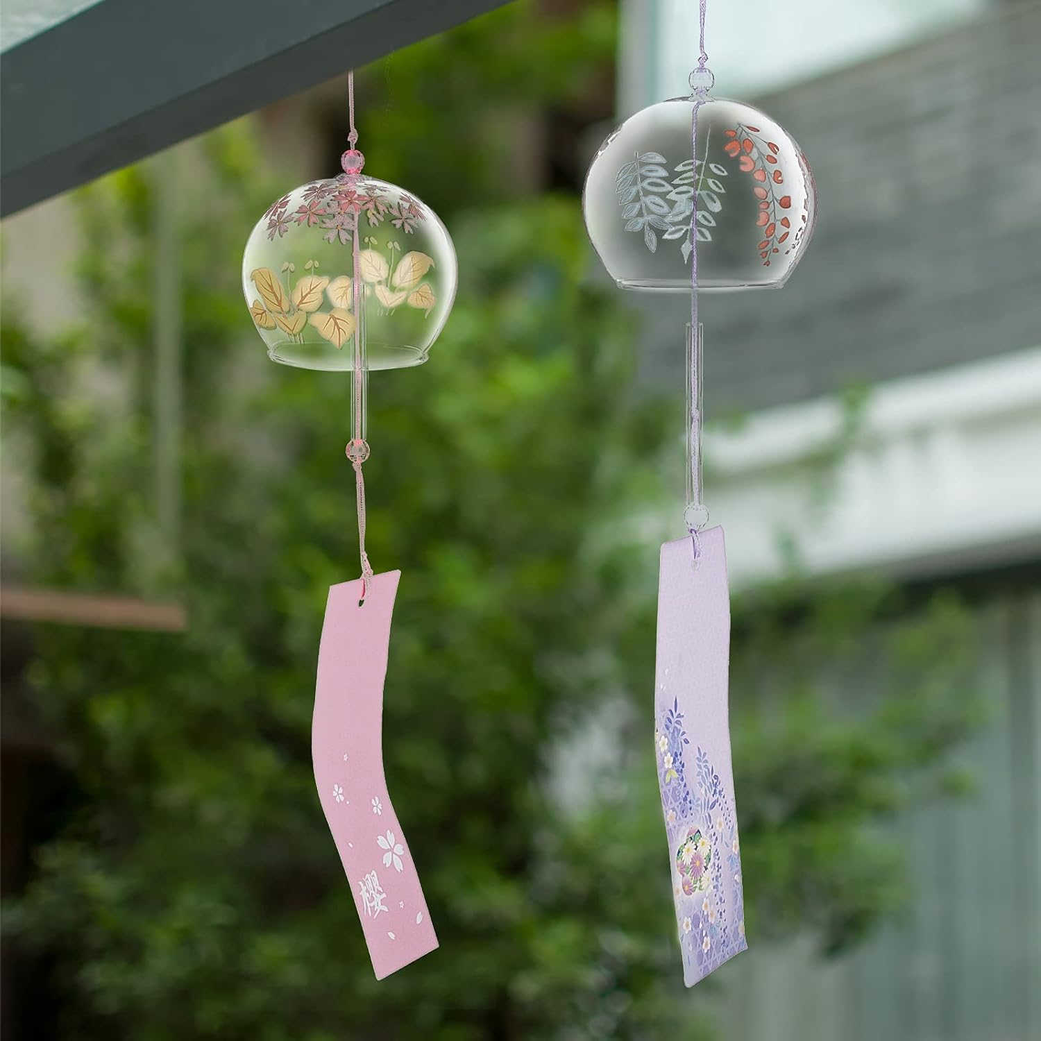 BENECREAT Японски вятърни камбанки, комплект от 2 розови и лилави стъклени вятърни камбанки, ръчно изработена висулка за подарък за рожден ден и декорация за дома