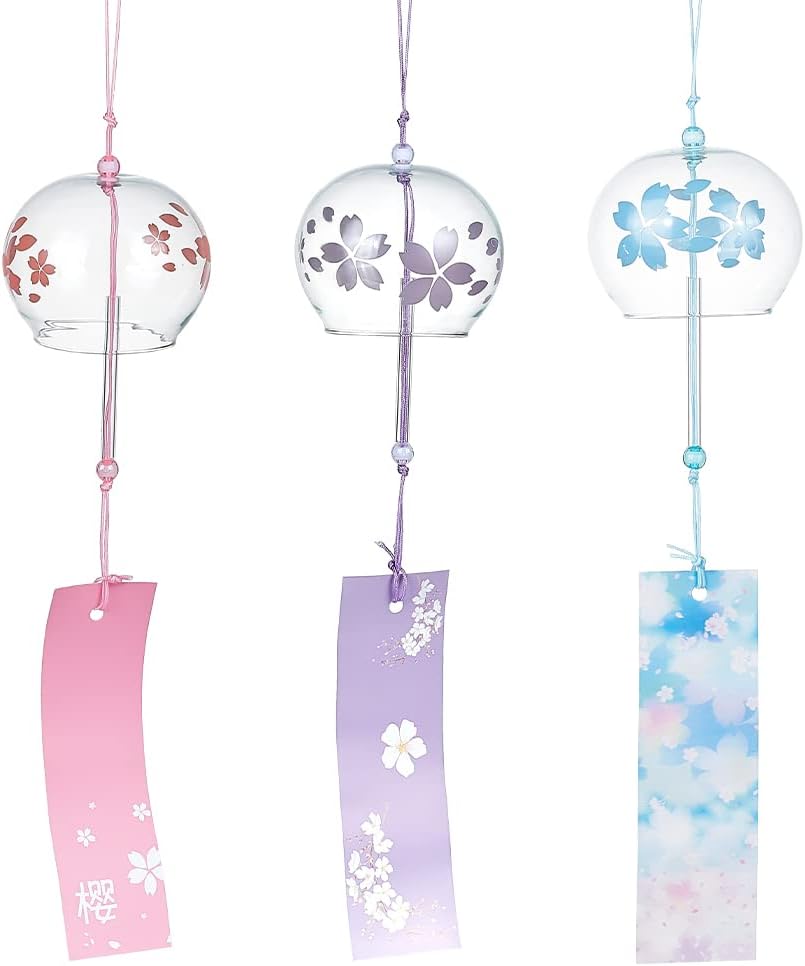 BENECREAT Японски вятърни камбанки, Розови/Сини/Лилави Стъклени Камбанки, Ръчно Изработени за Подарък за Рожден Ден и Декорация за Дома, Комплект от 3