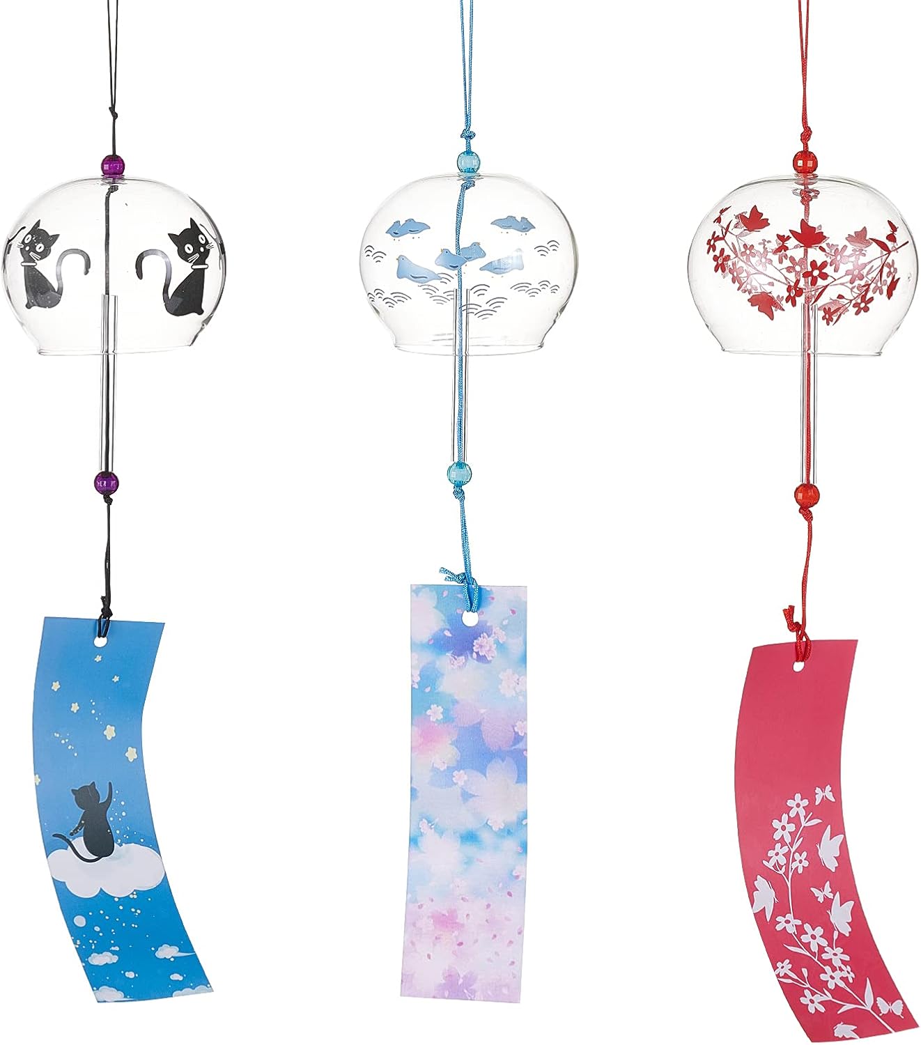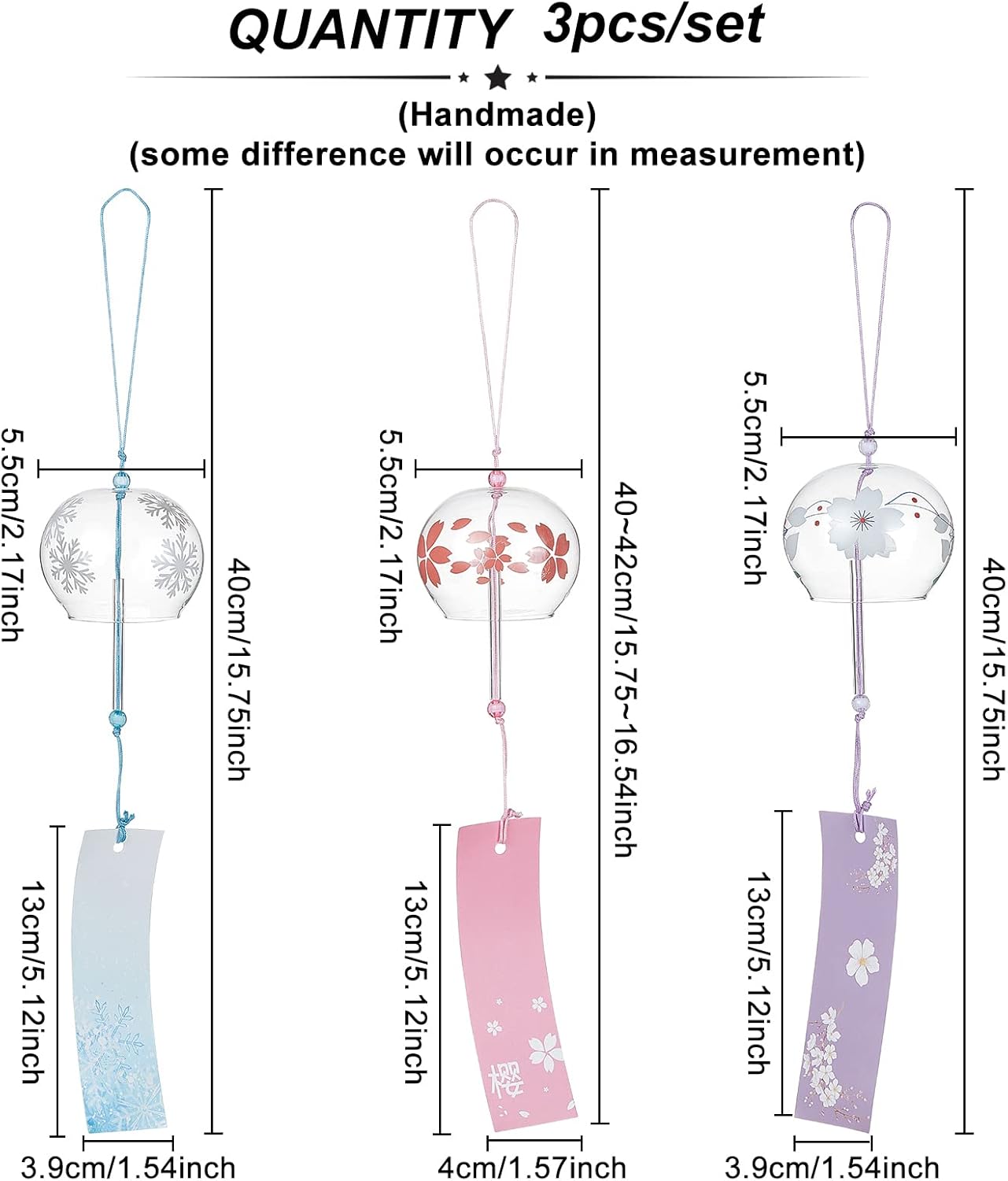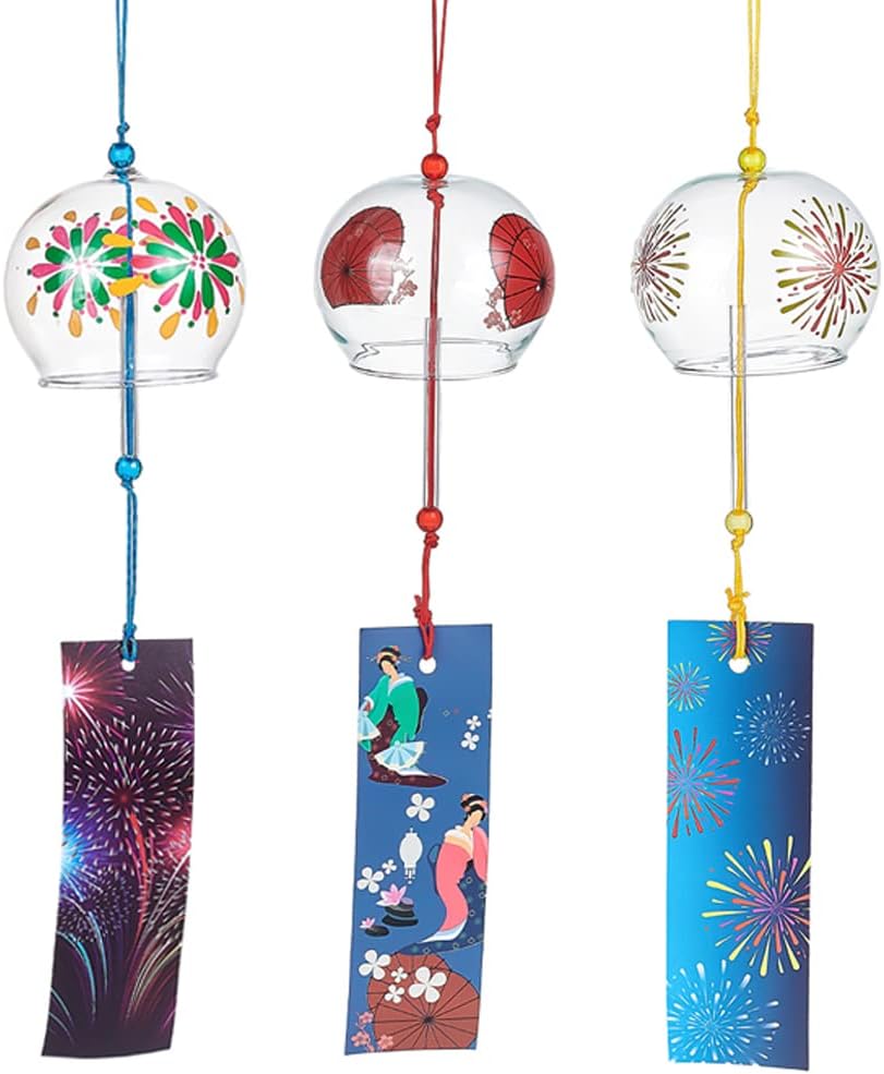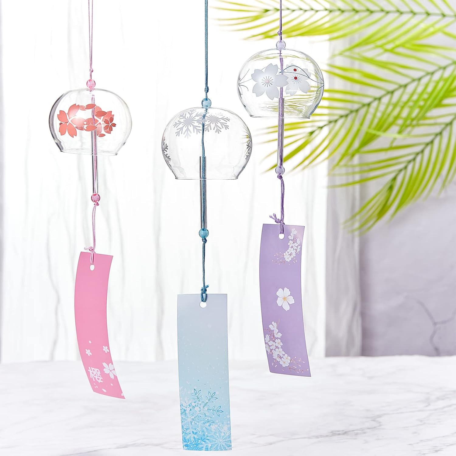 • [Вятърни камбанки в японски стил]: Включва ръчно изработени стъклени камбанки в 3 цвята - розов, червен и син, подходящи за ежедневна декорация.